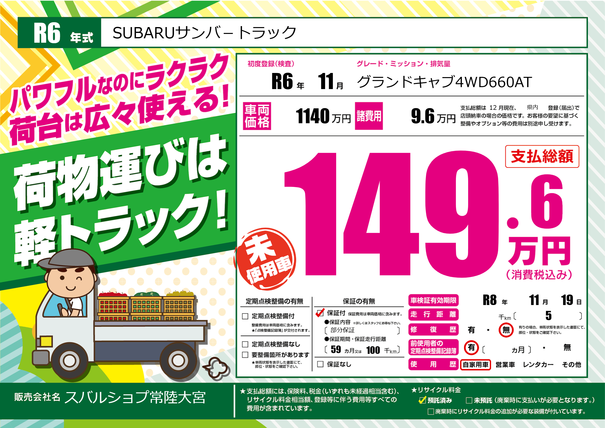 | 車名 | SUBARUサンバ-トラック | グレード ミッション 排気量 |