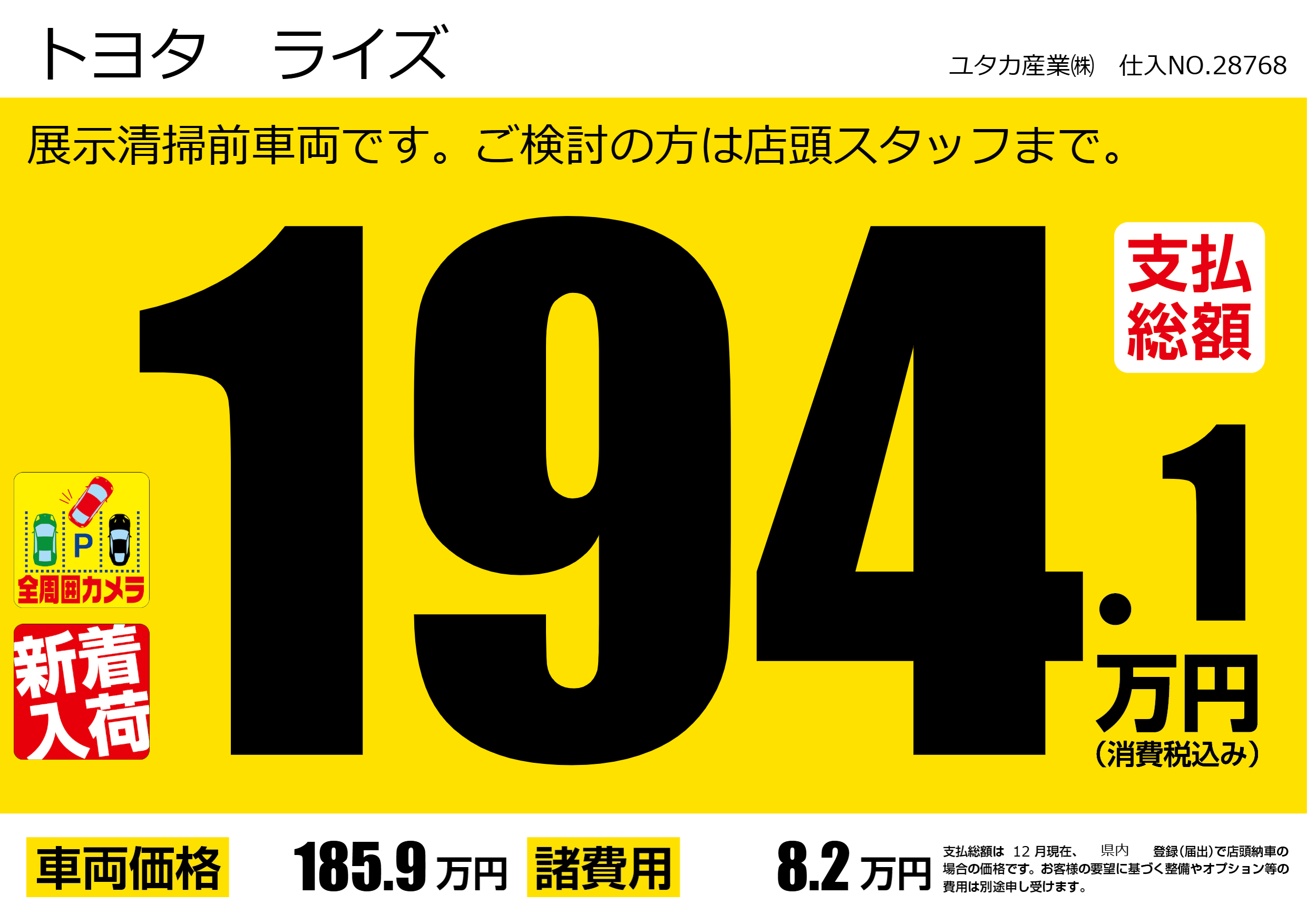 | 車名 | トヨタ ライズ | グレード ミッション 排気量 |