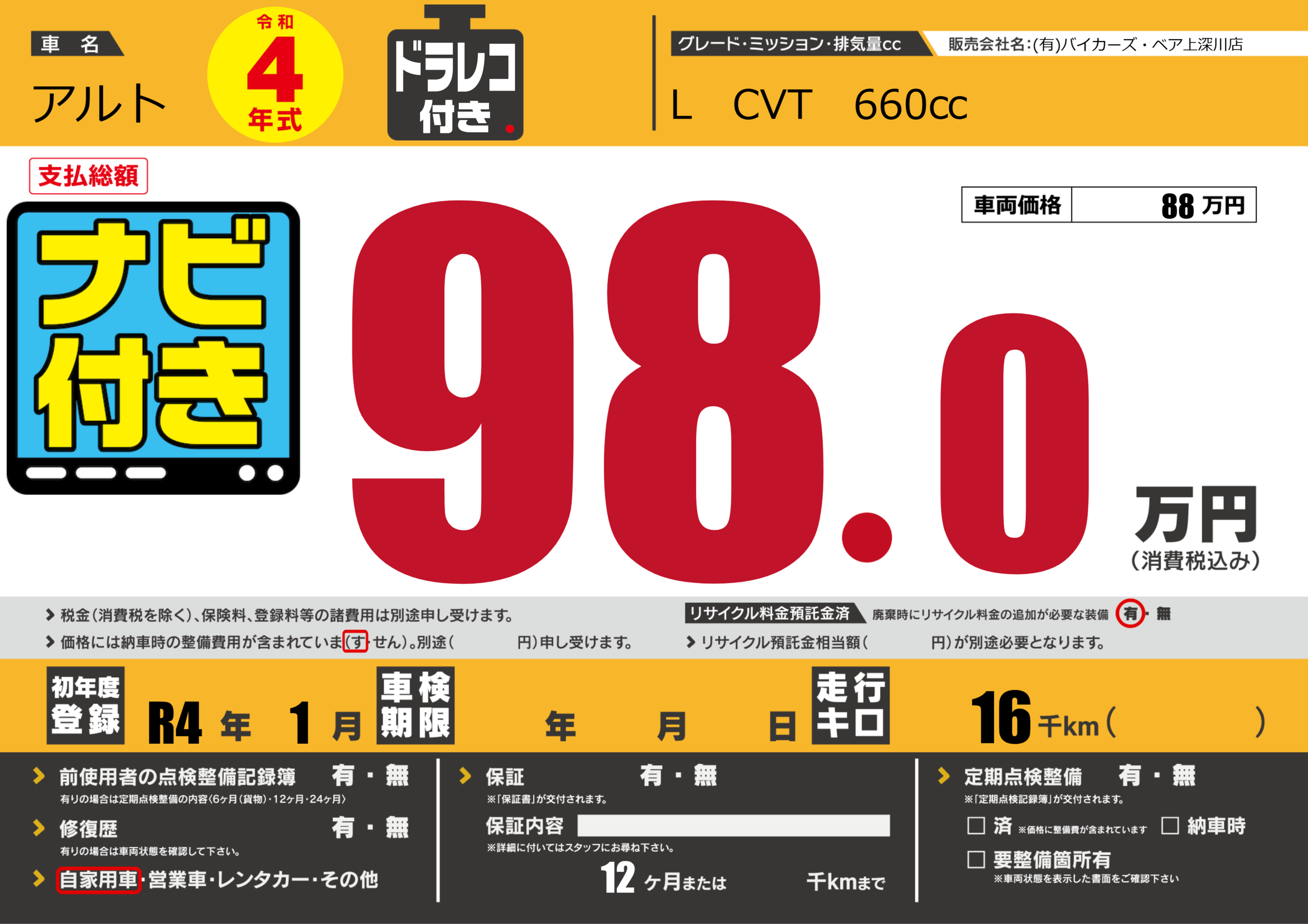 | 初年度登録 | R4年1月 | ||