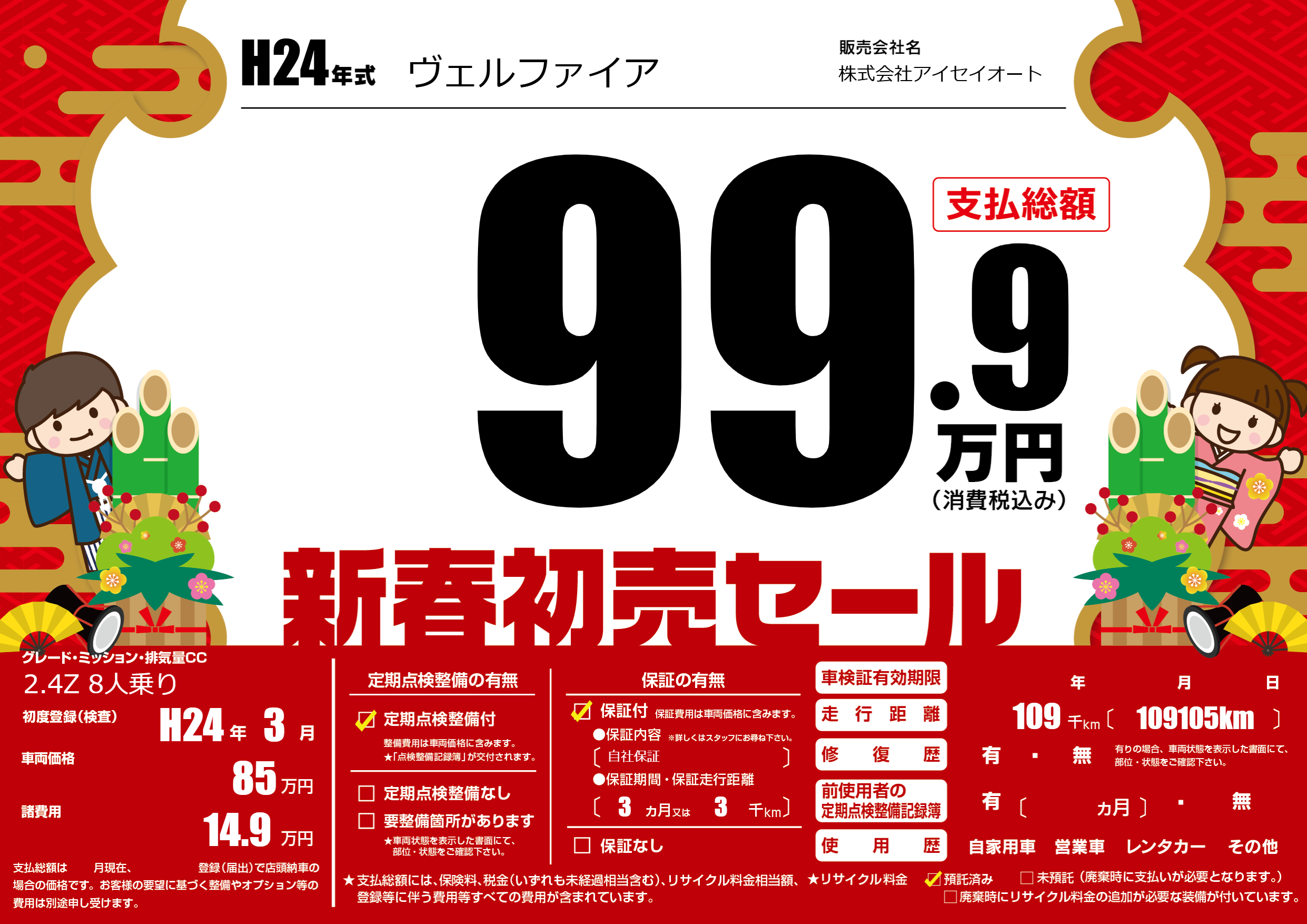 | 車名 | ヴェルファイア | グレード ミッション 排気量 |