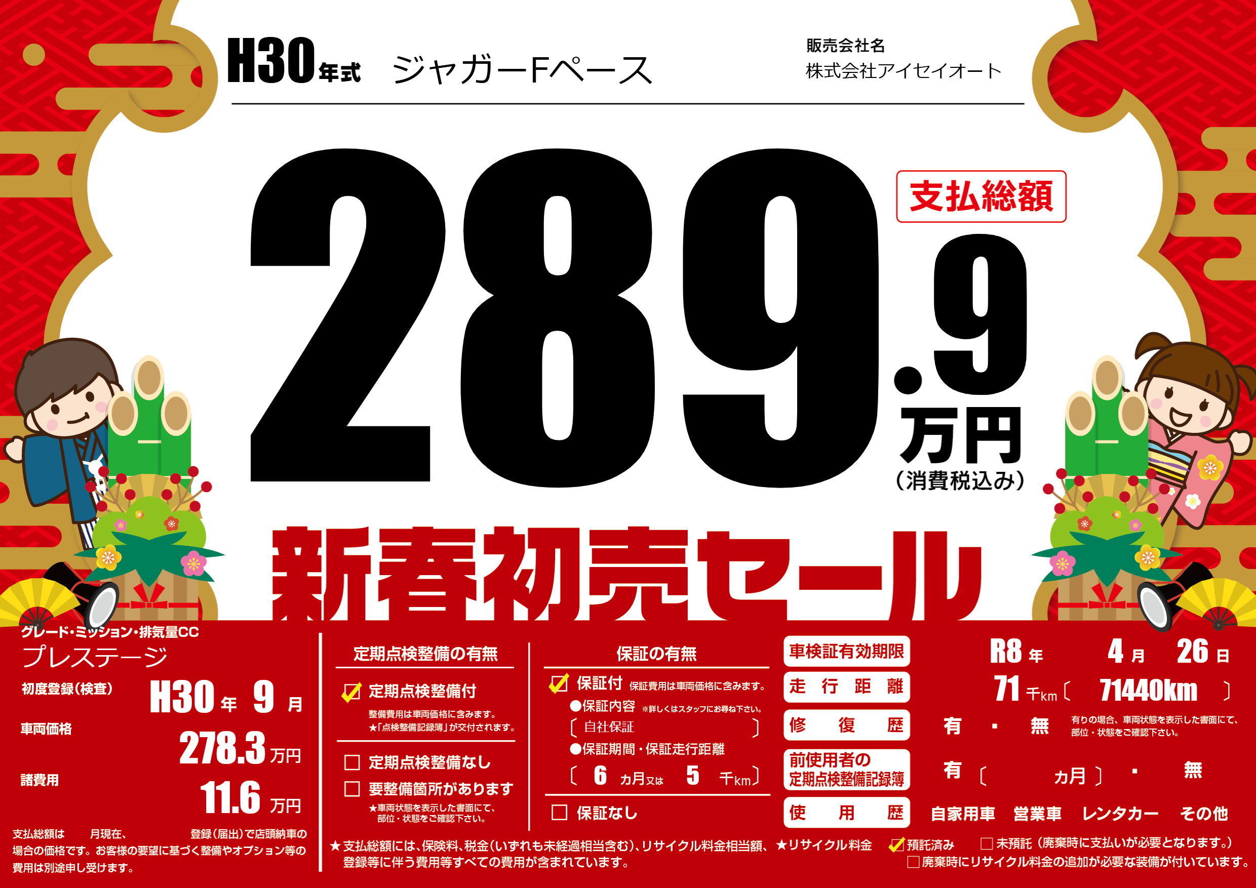 | 車名 | ジャガーFペース | グレード ミッション 排気量 |