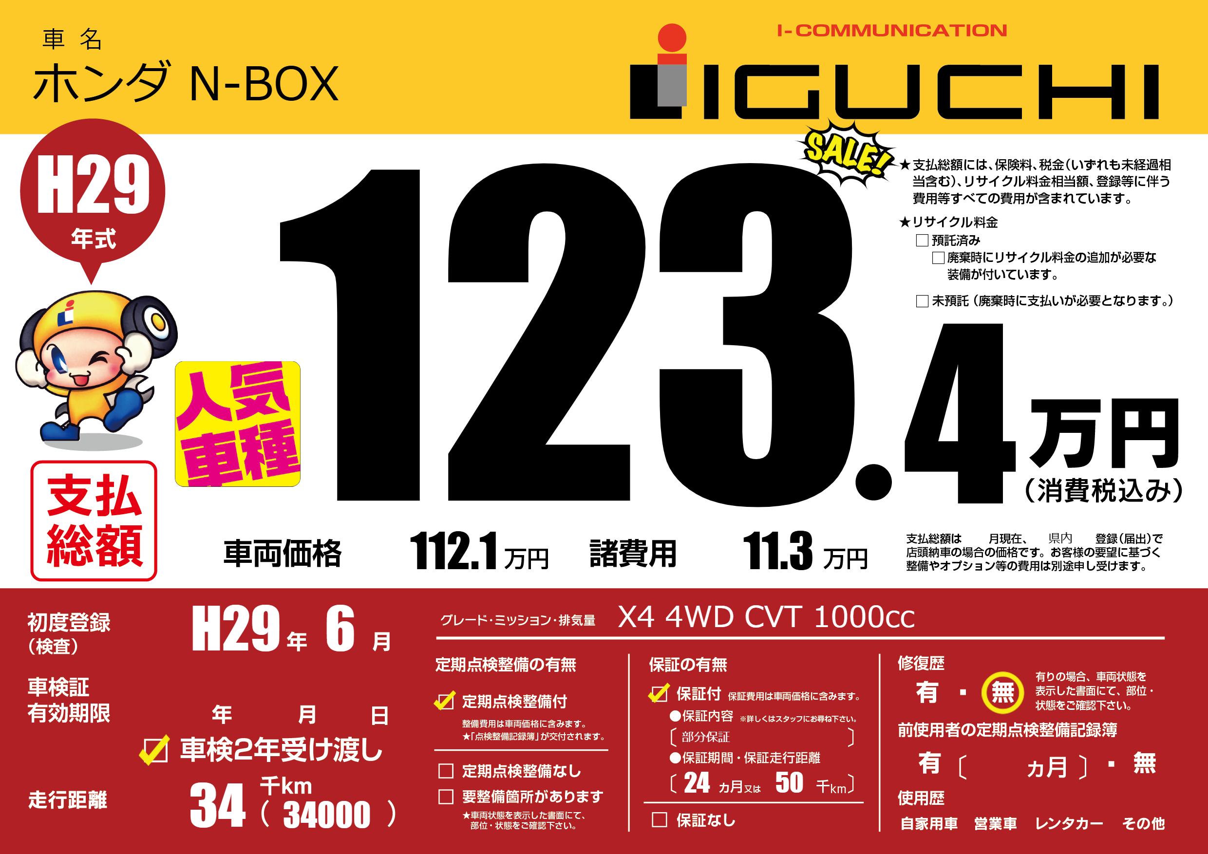 | 走行キロ | 3.4万km | 初年度登録 | H29年6月 |