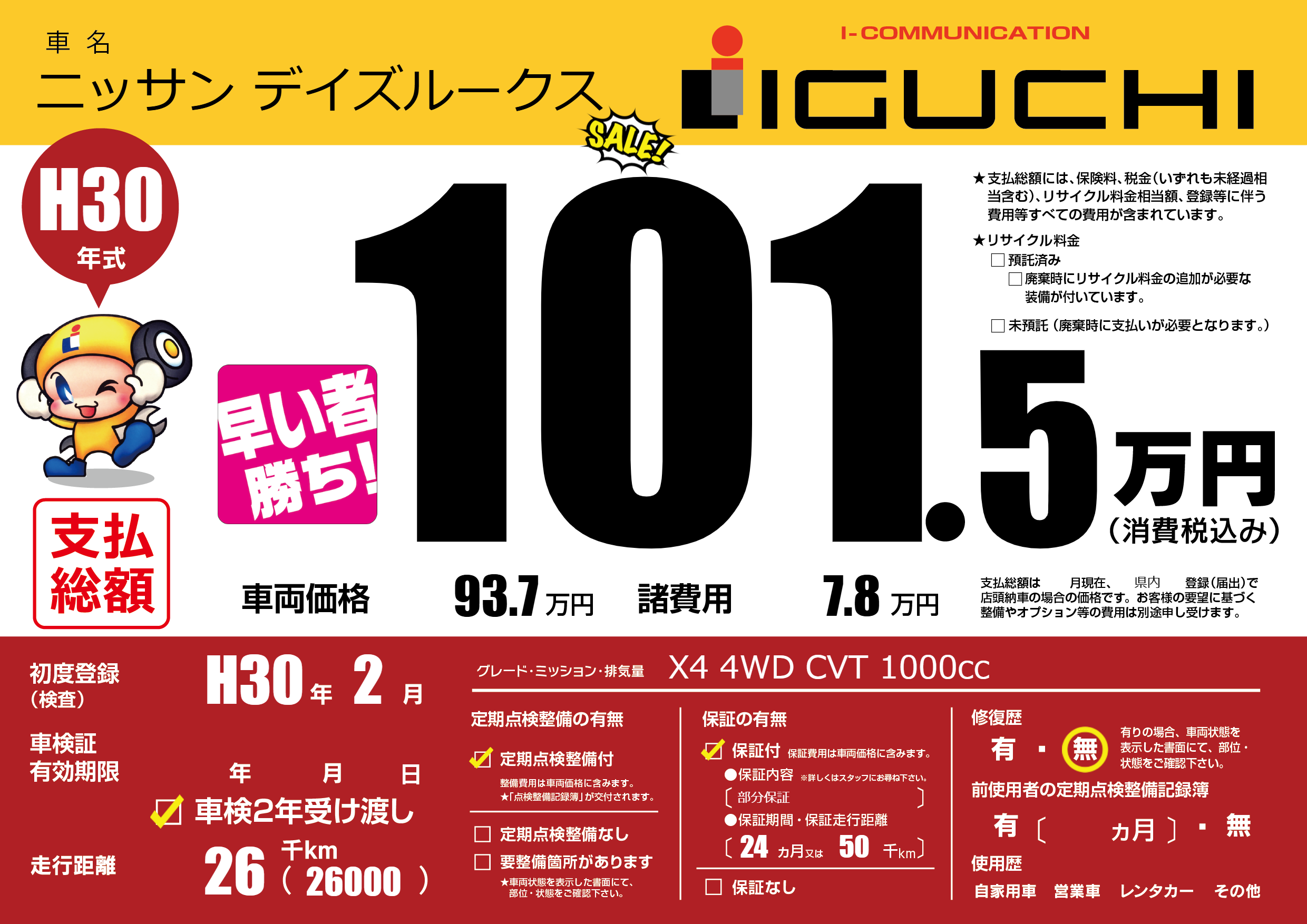 保証付き 保証内容(部分保証) 24ヶ月または(50)千kmまで |