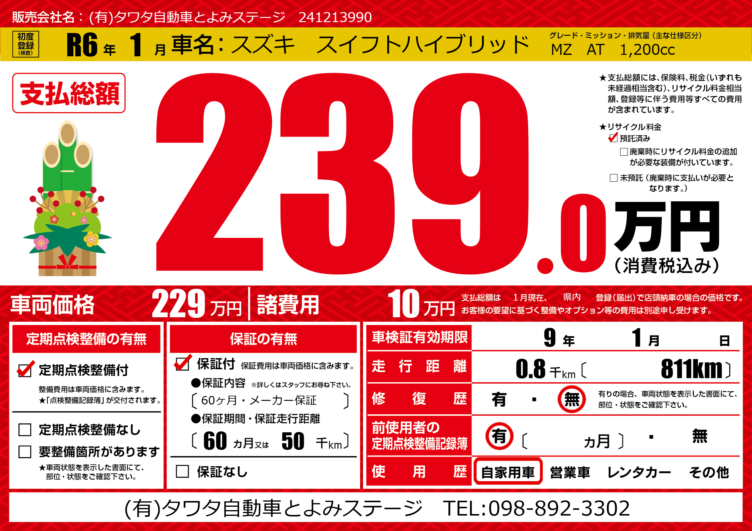 | 走行キロ | - | 初年度登録 | R6年1月 |