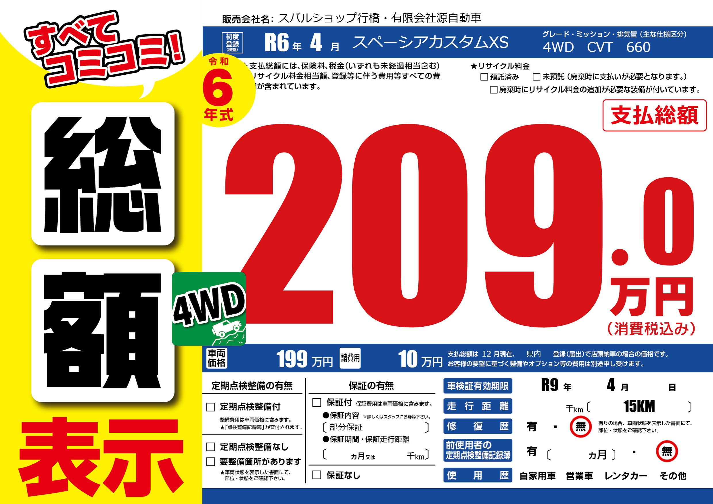 | 車名 | スペーシアカスタムXS | グレード ミッション 排気量 |