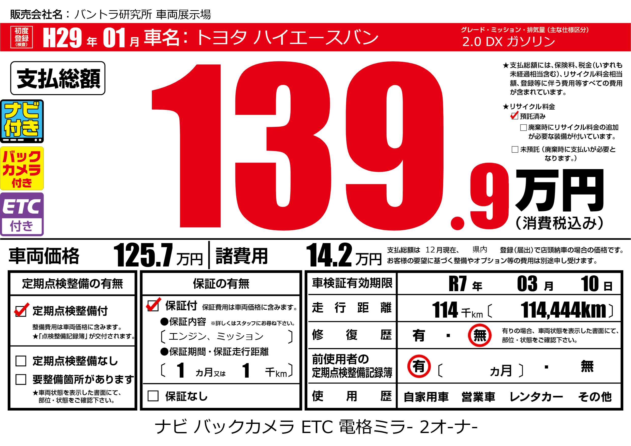 なし | 車検制限 | R7年03月10月 |