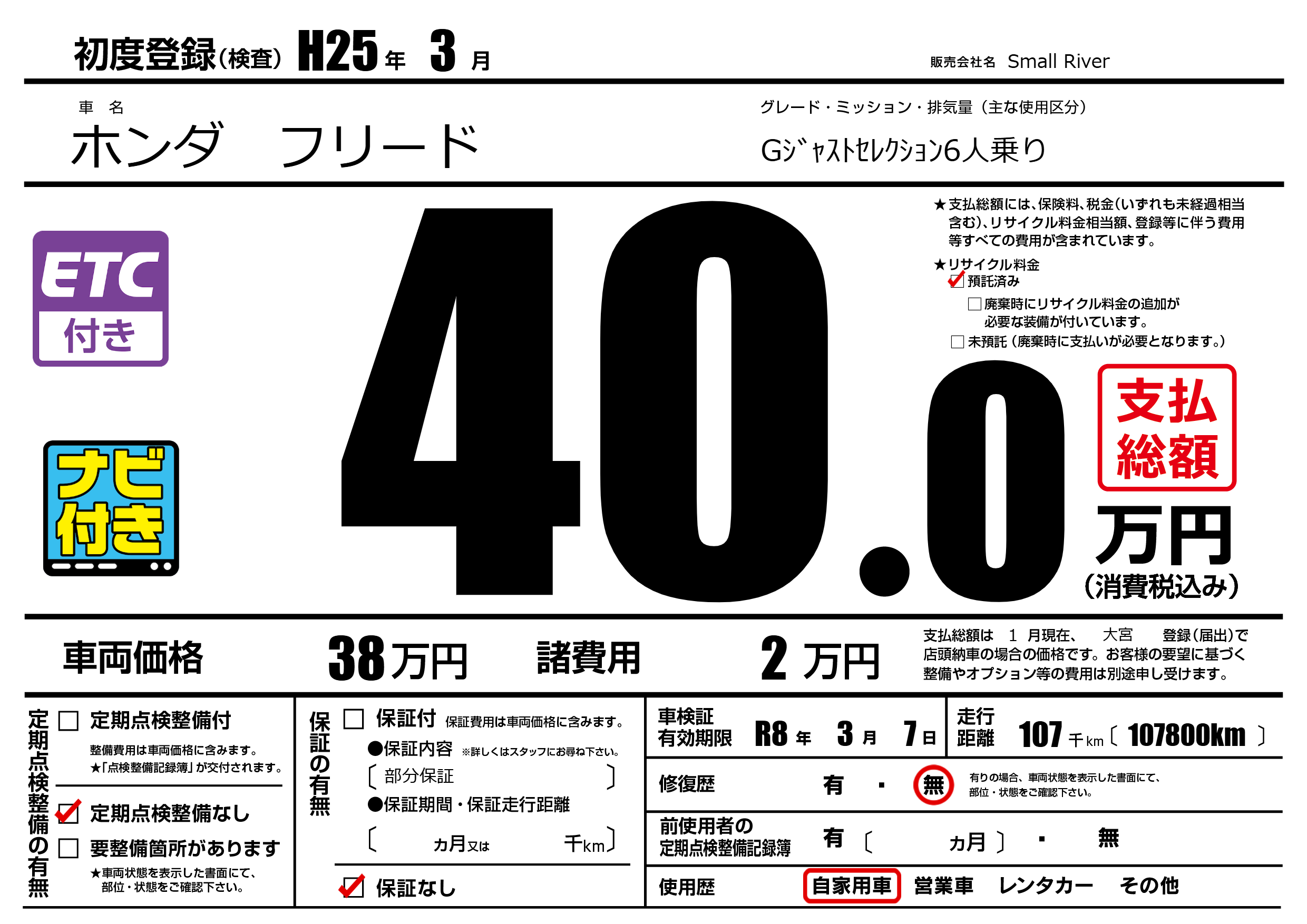 なし | 車検制限 | R8年3月7月 |
