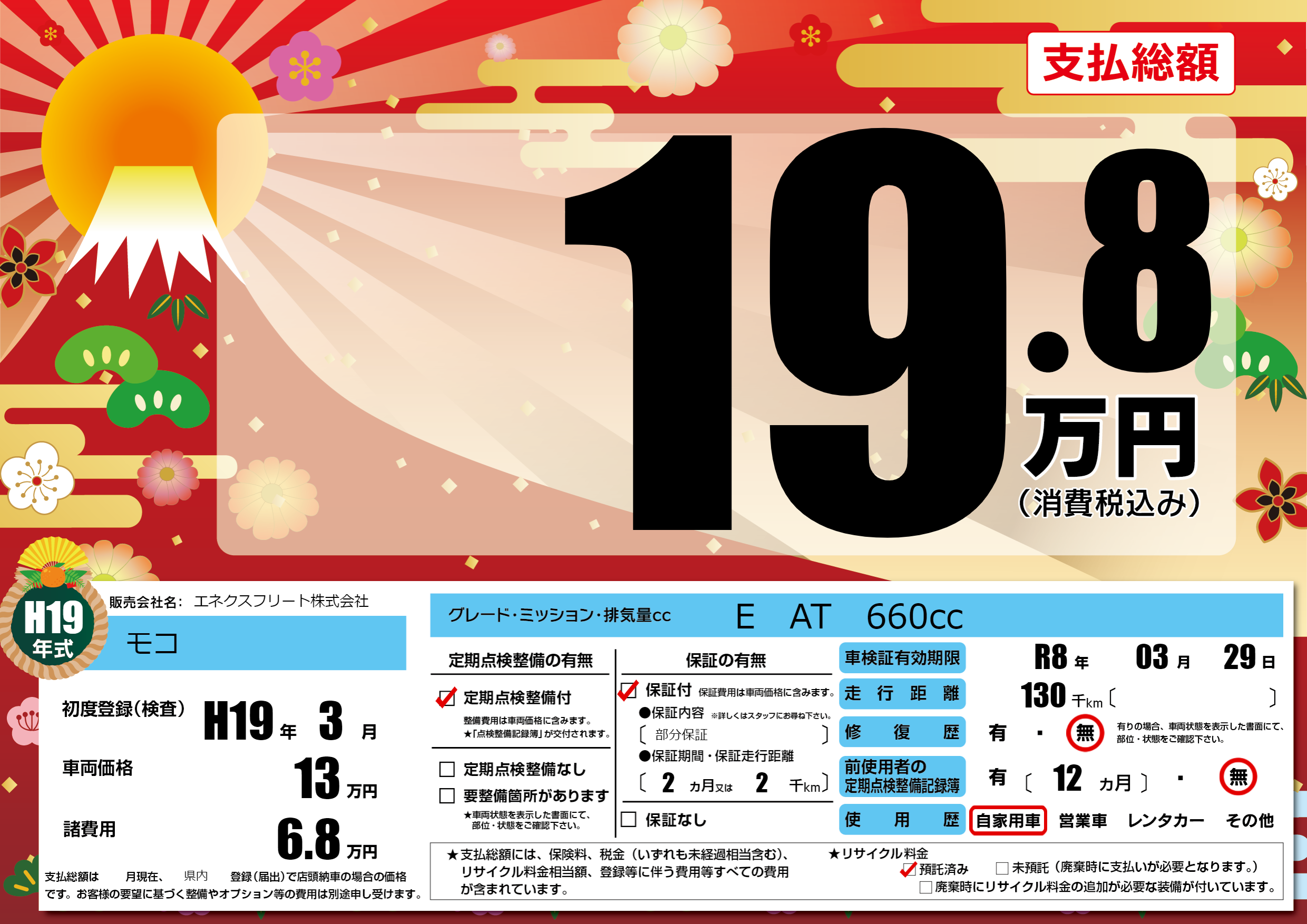 | 初年度登録 | H19年3月 | ||