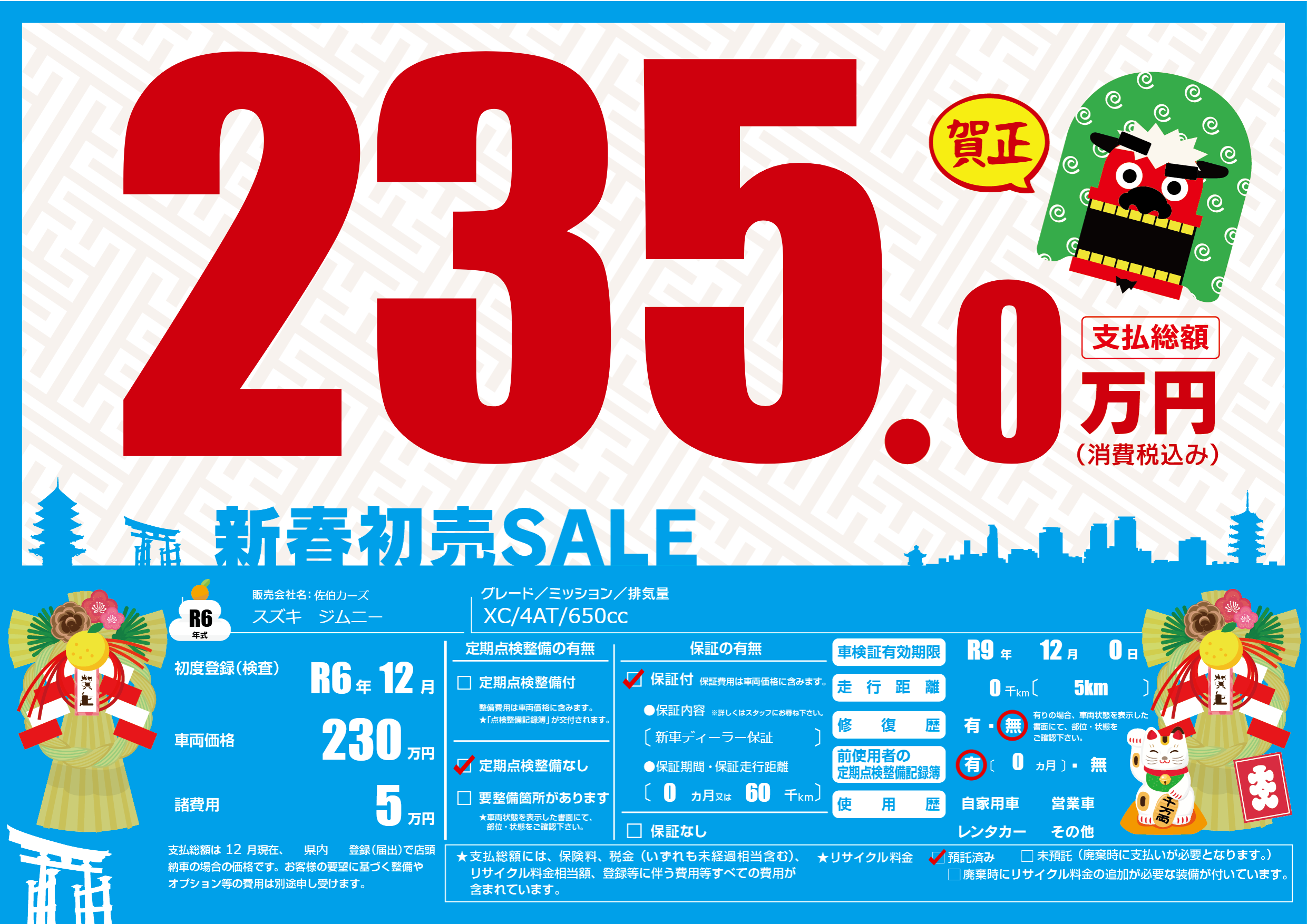 | 走行キロ | - | 初年度登録 | R6年12月 |