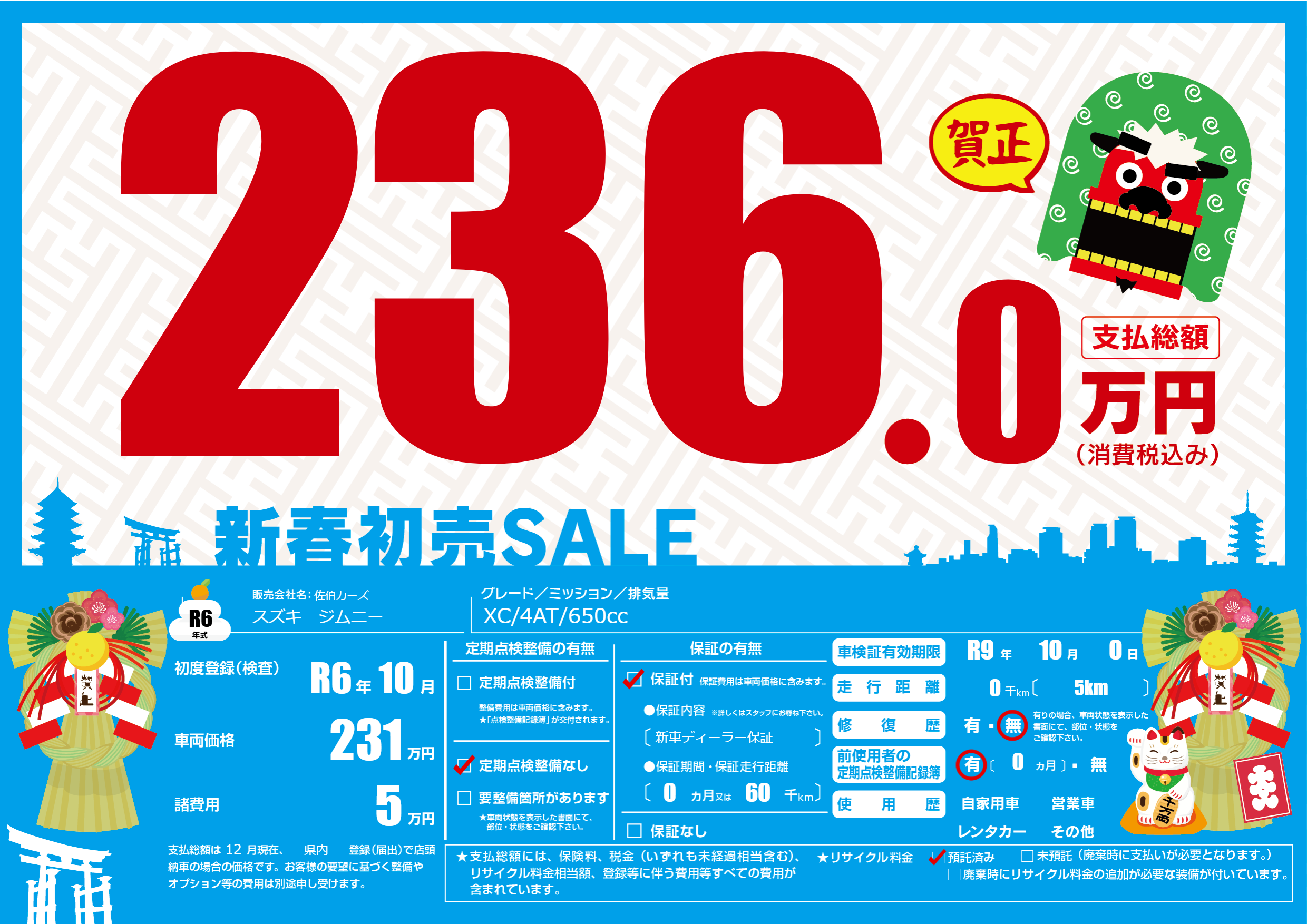 なし | 車検制限 | R9年10月0月 |