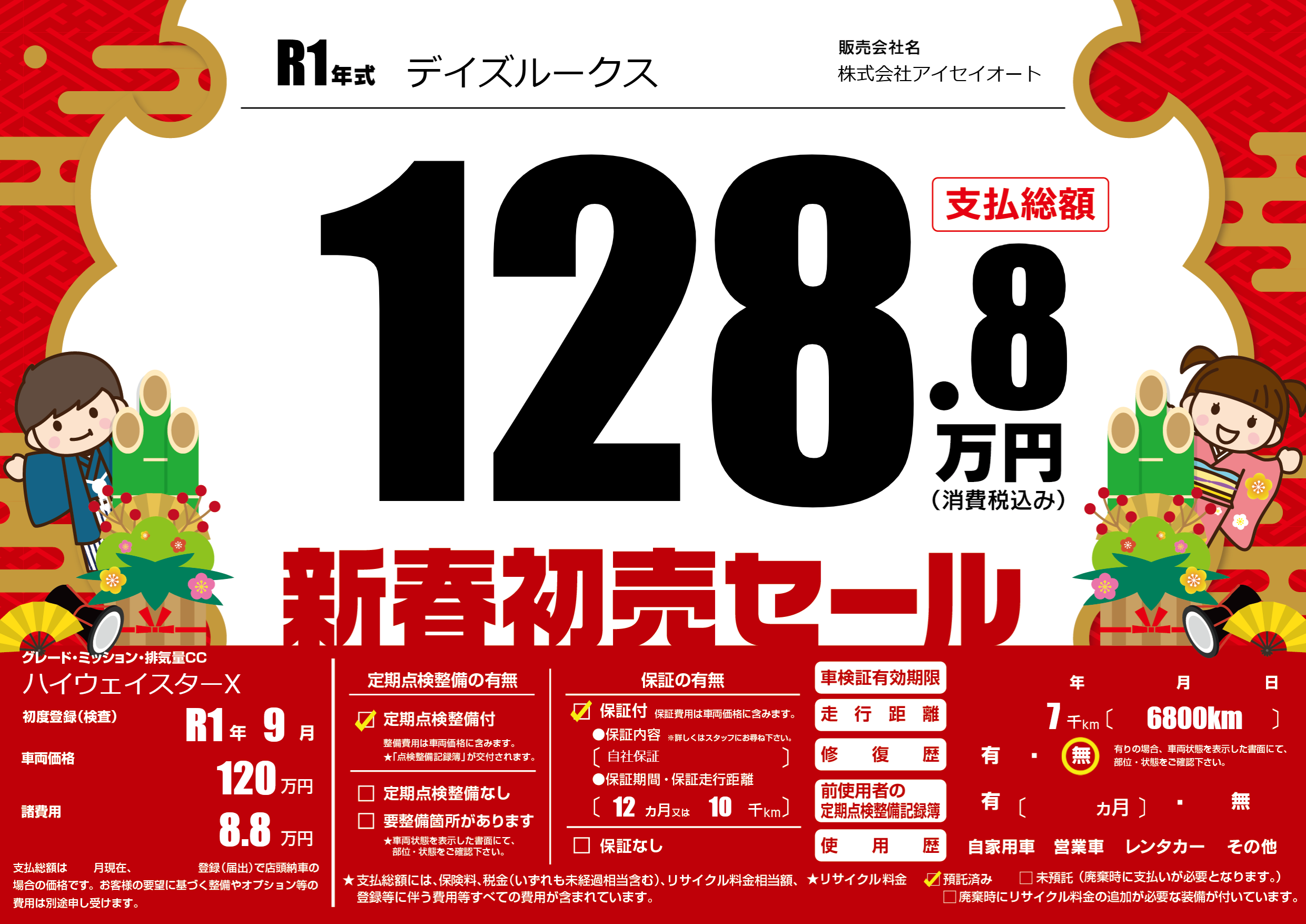 | 車名 | デイズルークス | グレード ミッション 排気量 |
