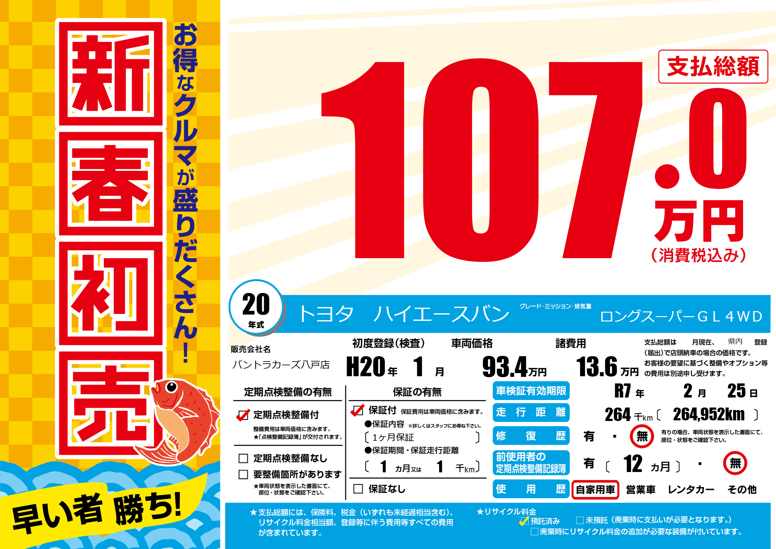 | 走行キロ | 26.4万km | 初年度登録 | H20年1月 |