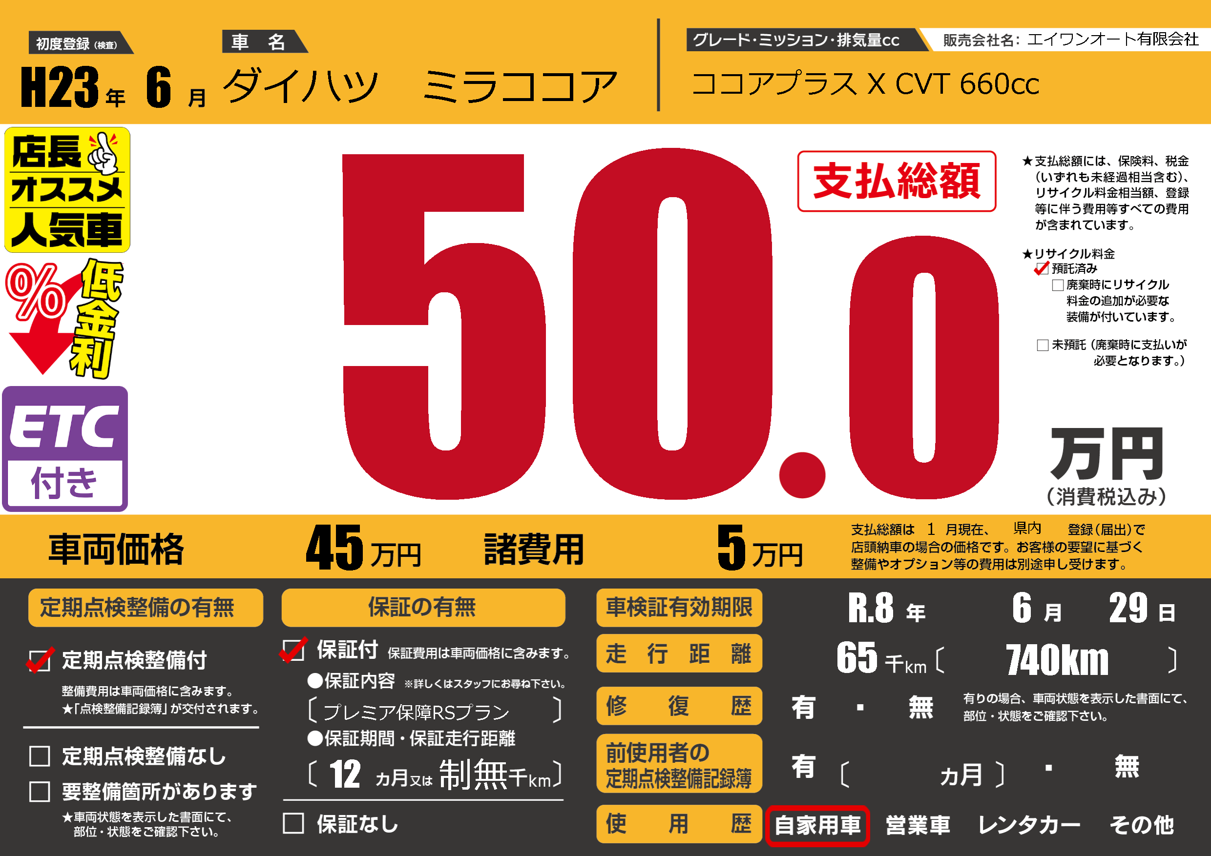 | 車検制限 | R.8年 6月 29日 | ||