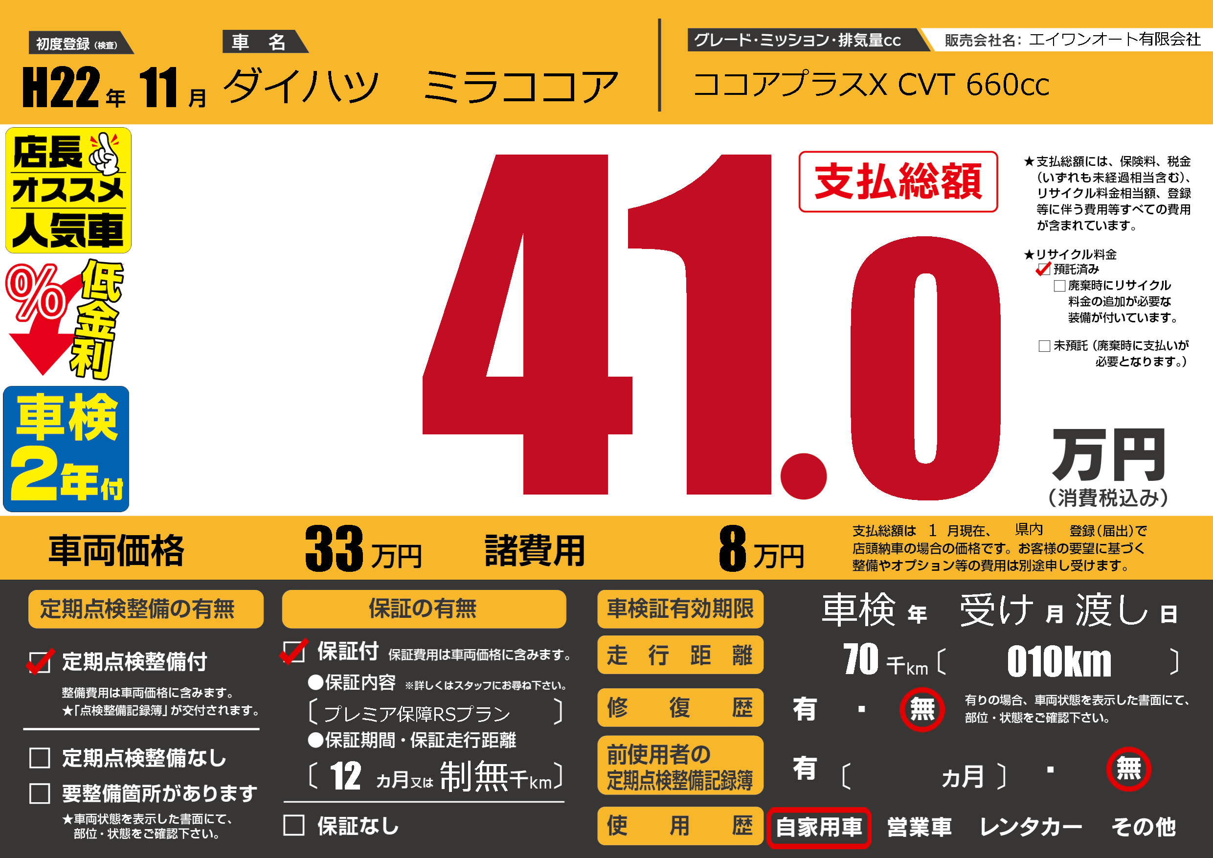エイワンオート(有) 新車市場山口小郡店の展示車