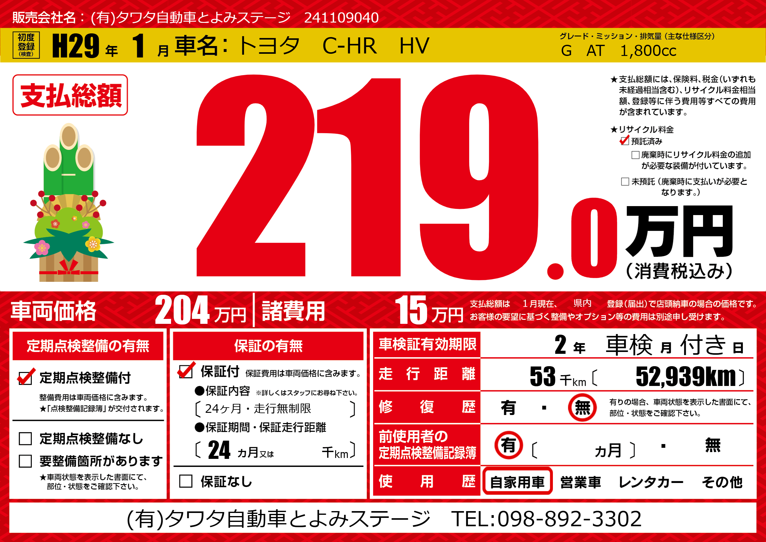 | 定期点検整備 | 定期点検整備あり | ||
