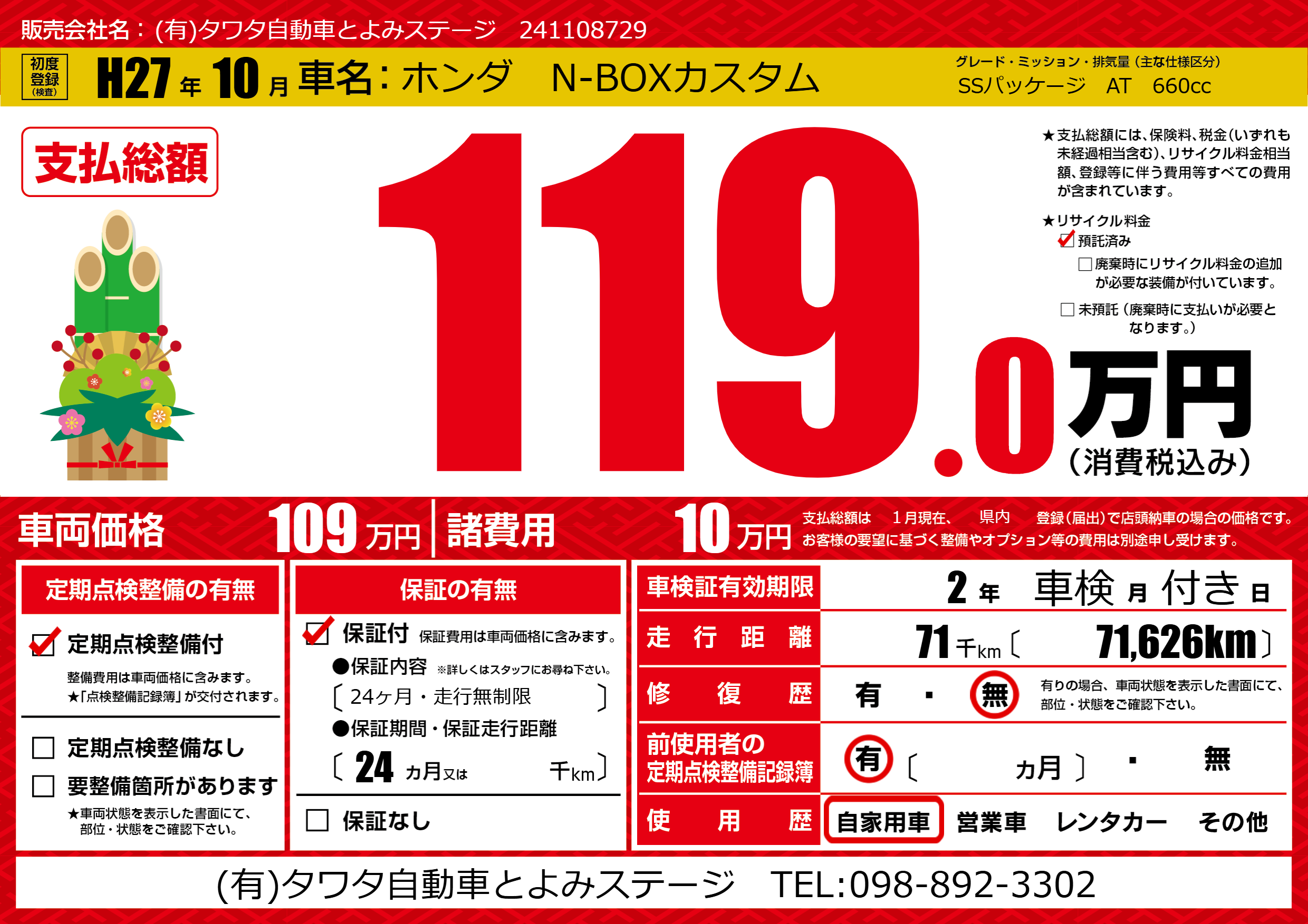 | 定期点検整備 | 定期点検整備あり | ||