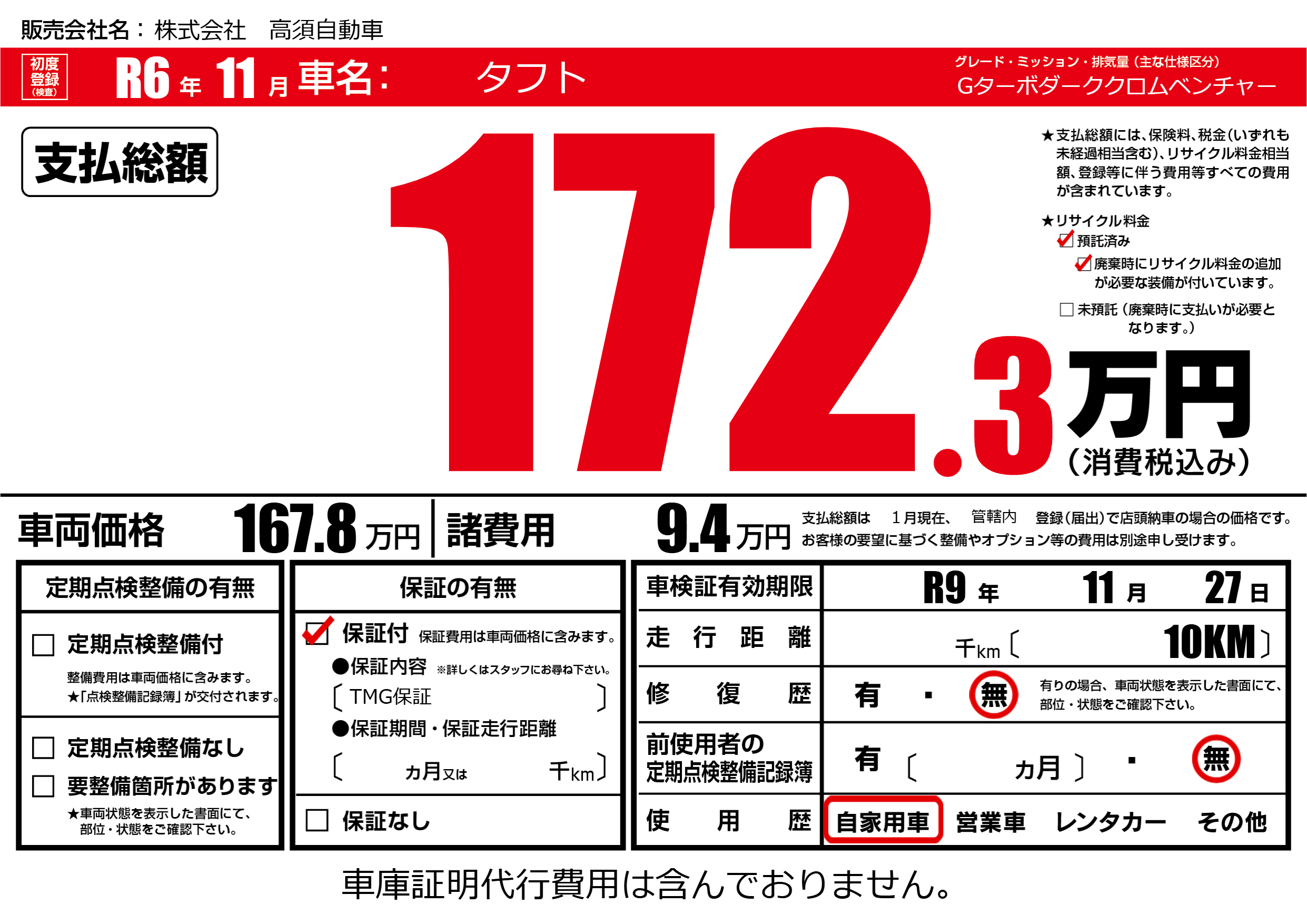 保証付き 保証内容(TMG保証) ---ヶ月または()千kmまで |
