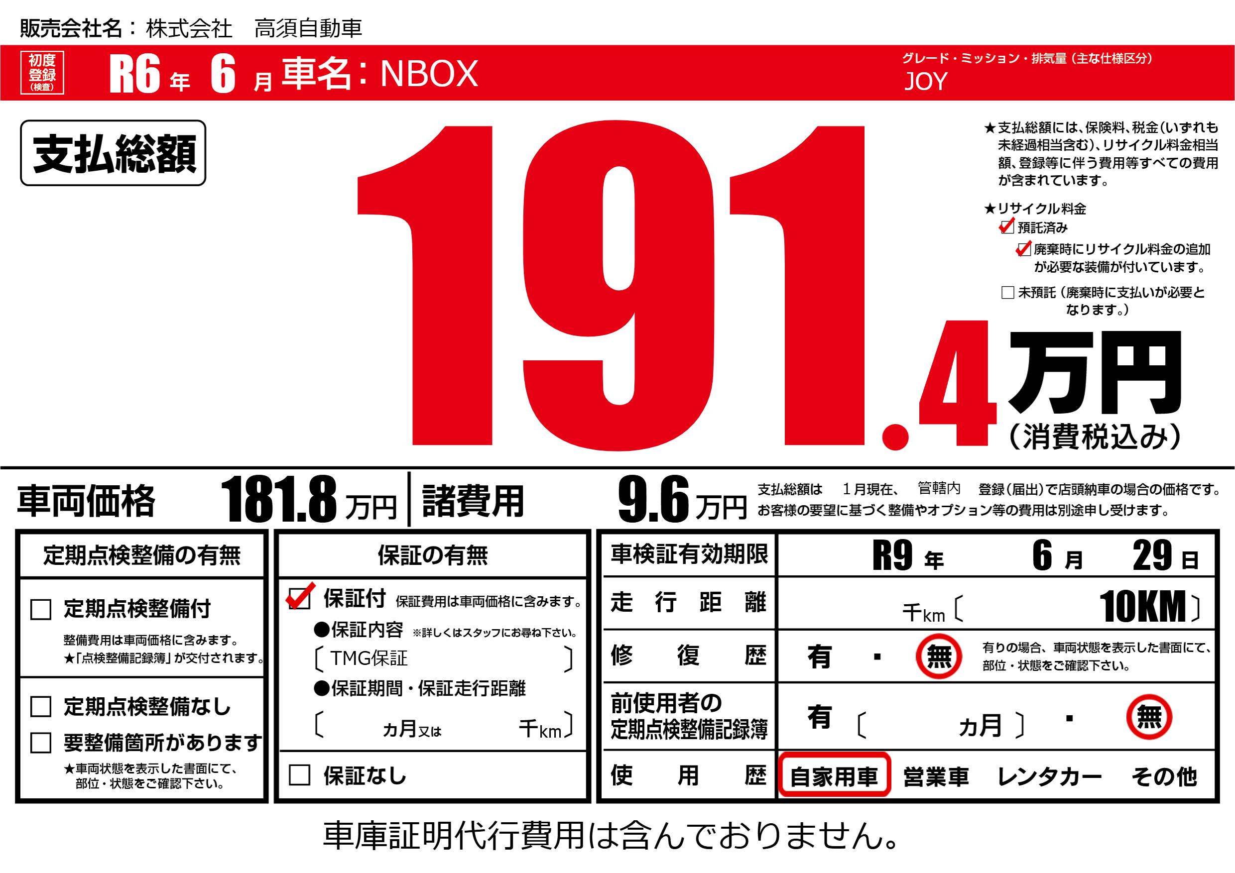 なし | 車検制限 | R9年6月29月 |