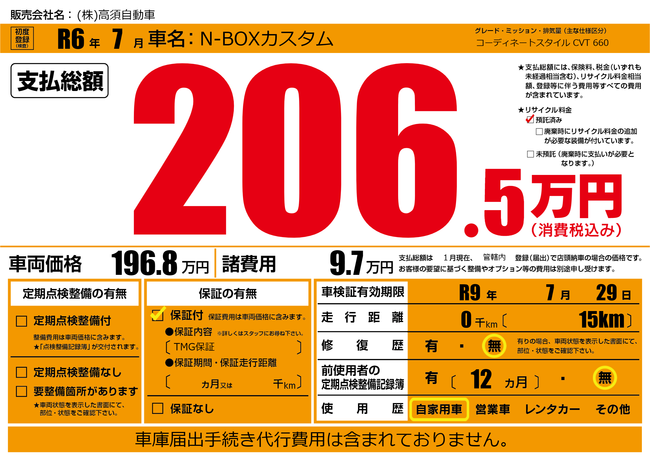 | 車名 | N-BOXカスタム | グレード ミッション 排気量 |
