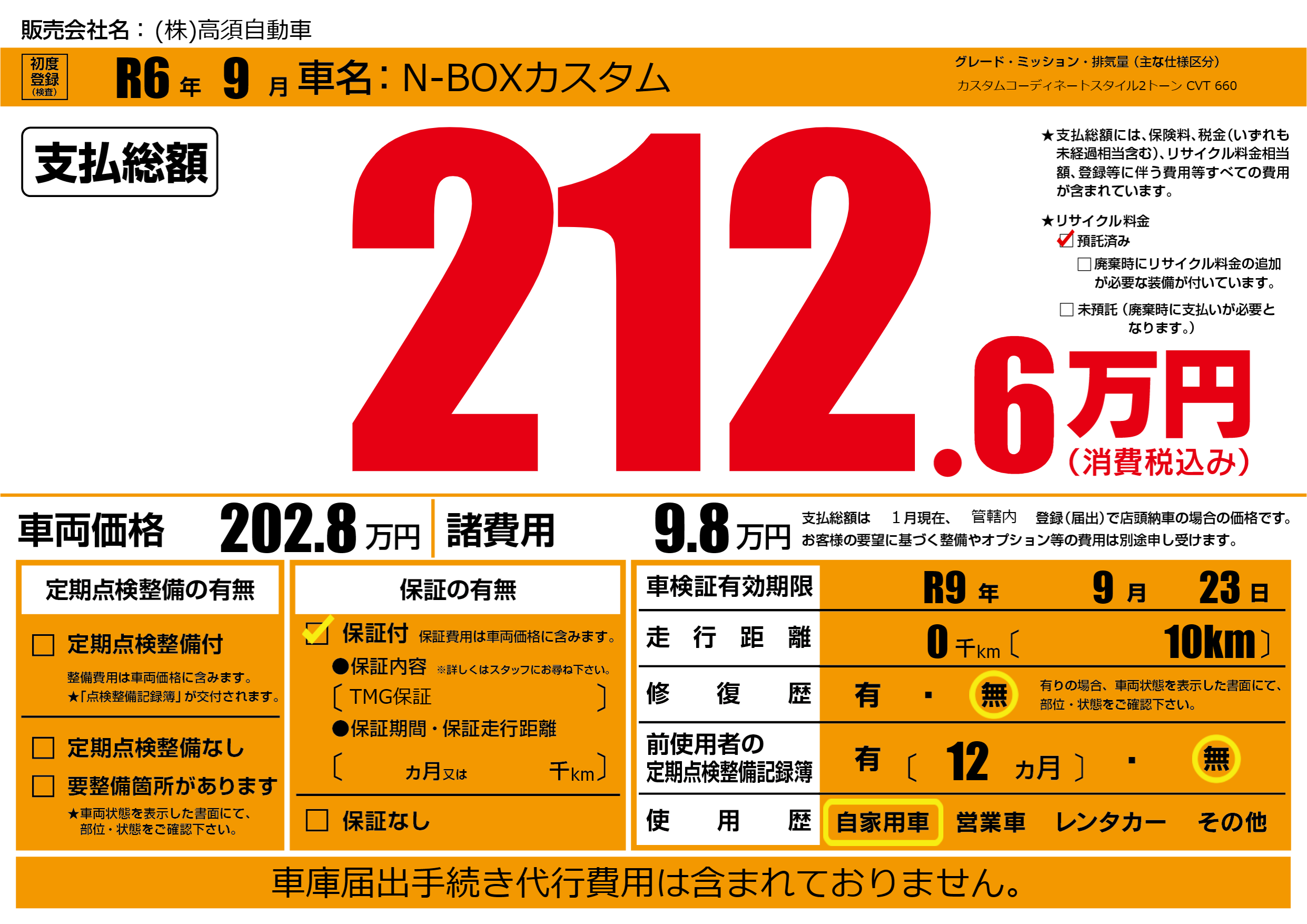 | 車名 | N-BOXカスタム | グレード ミッション 排気量 |