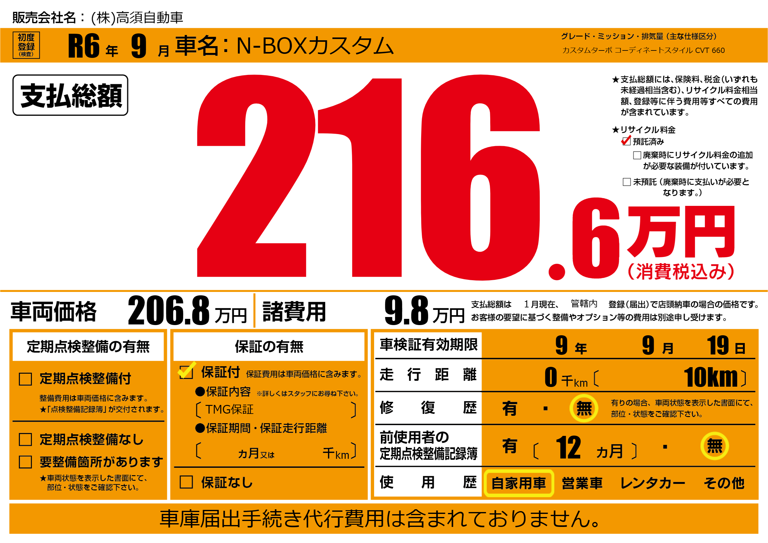 なし | 車検制限 | 9年9月19月 |