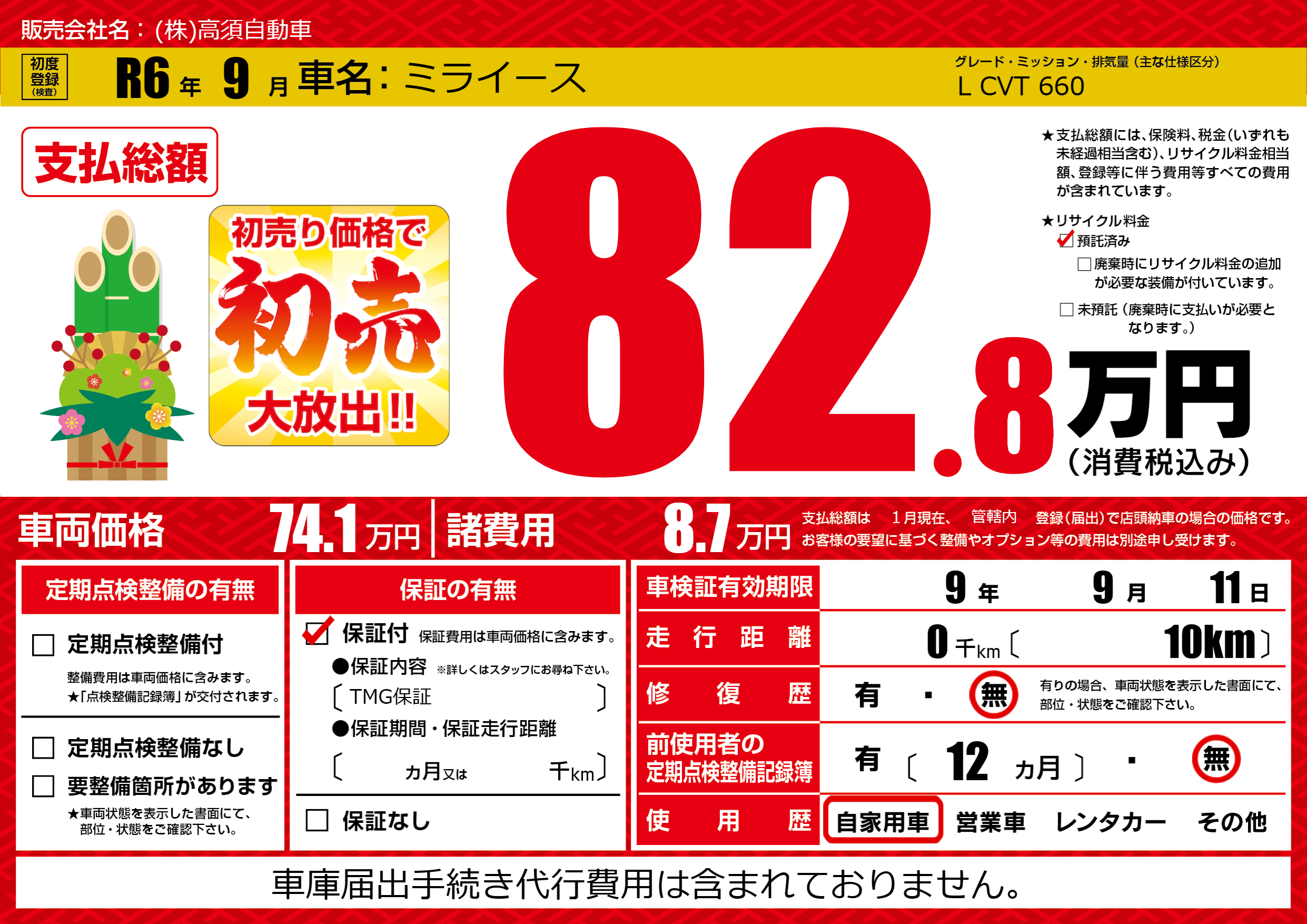 保証付き 保証内容(TMG保証) ---ヶ月または()千kmまで |