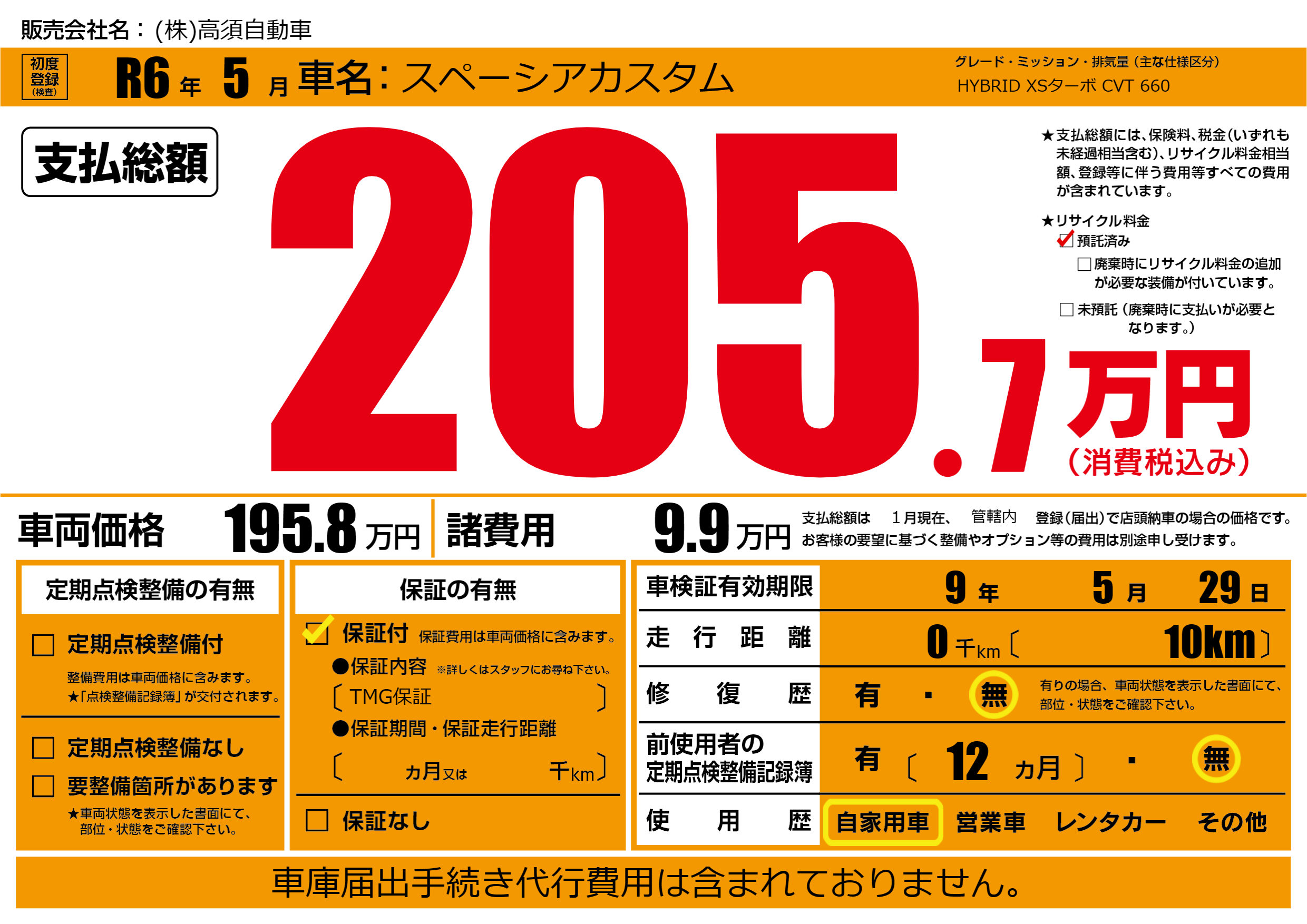 | 車名 | スペーシアカスタム | グレード ミッション 排気量 |