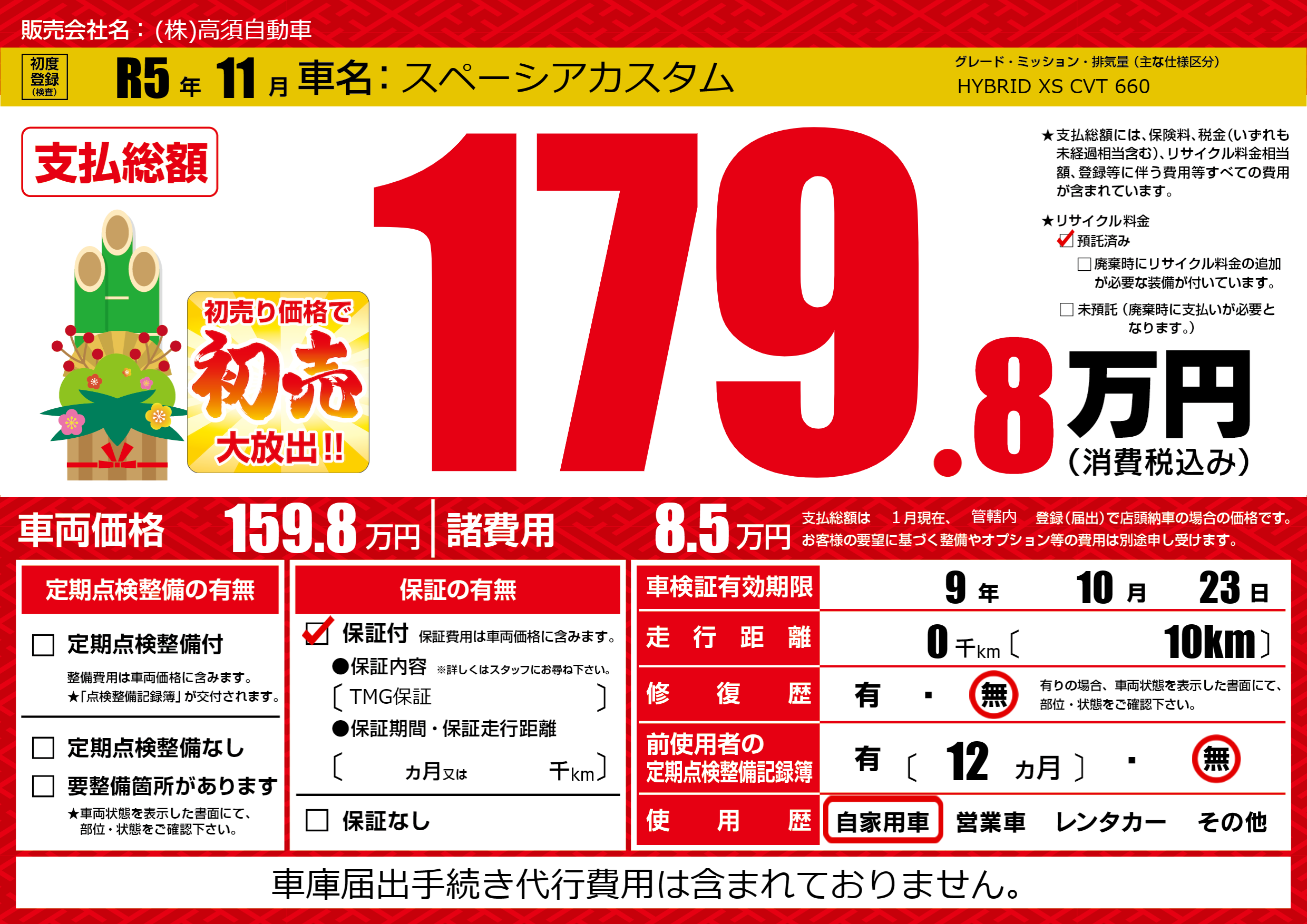 | 車名 | スペーシアカスタム | グレード ミッション 排気量 |