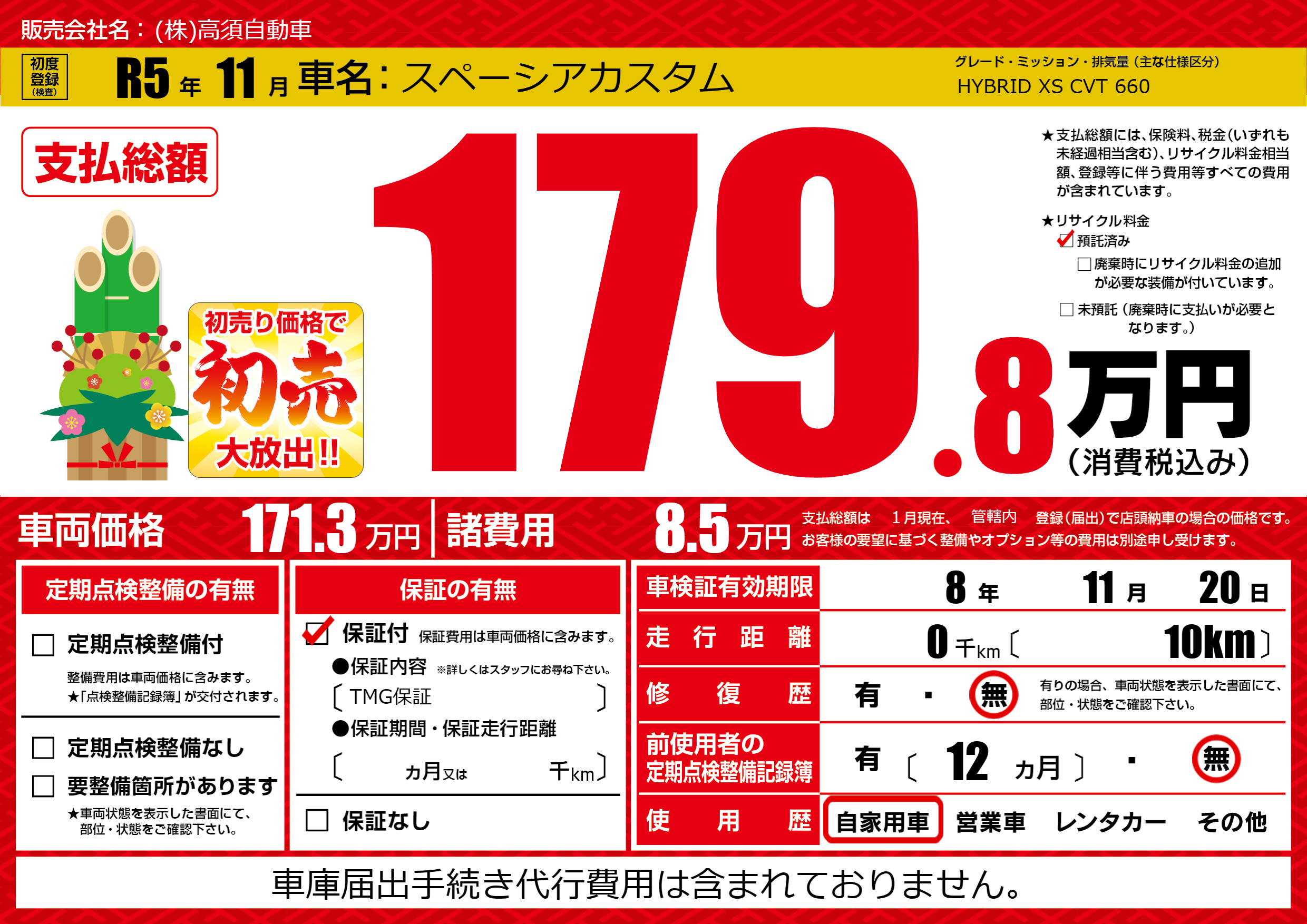 | 走行キロ | - | 初年度登録 | R5年11月 |