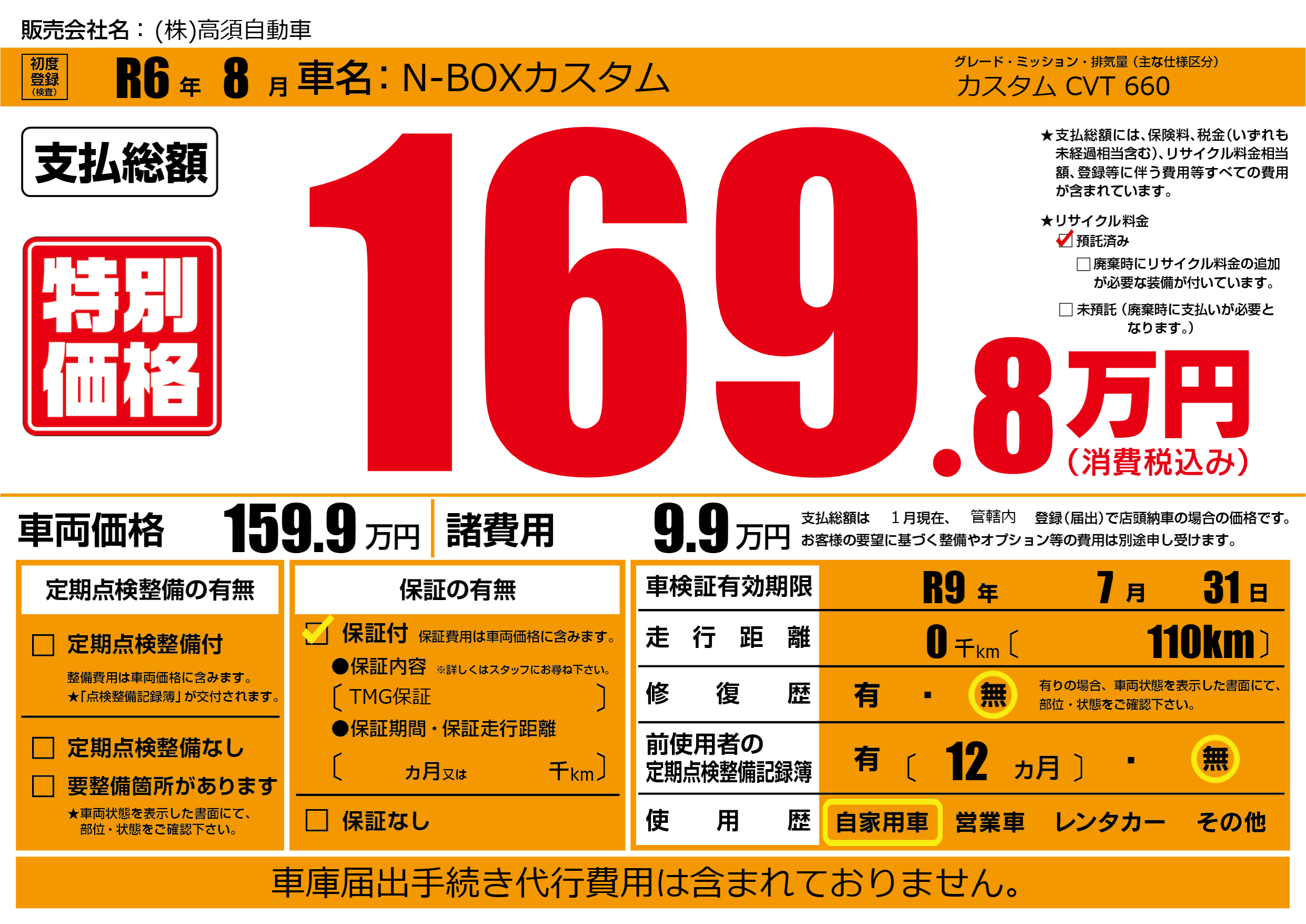 保証付き 保証内容(TMG保証) ---ヶ月または()千kmまで |