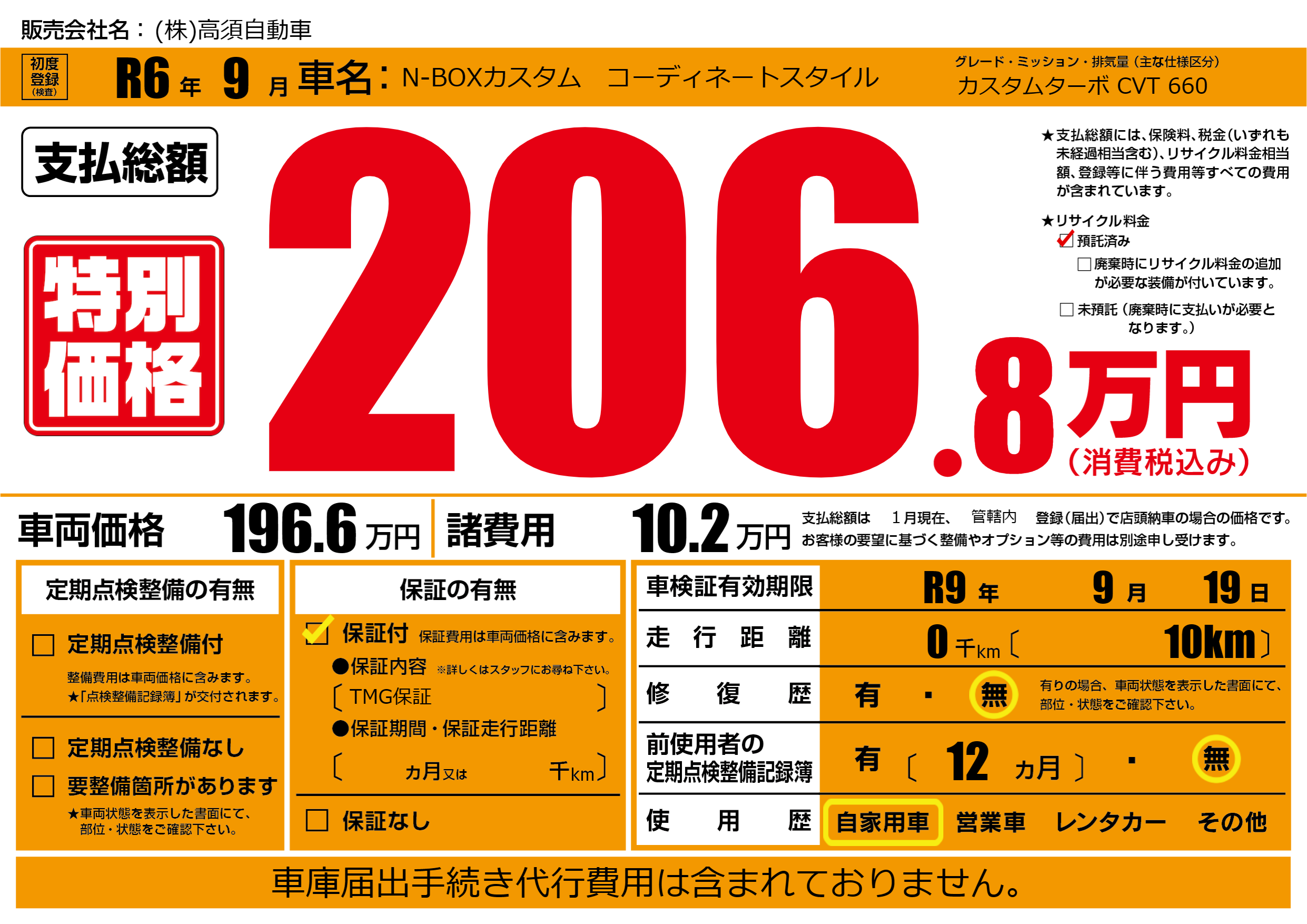 なし | 車検制限 | R9年9月19月 |