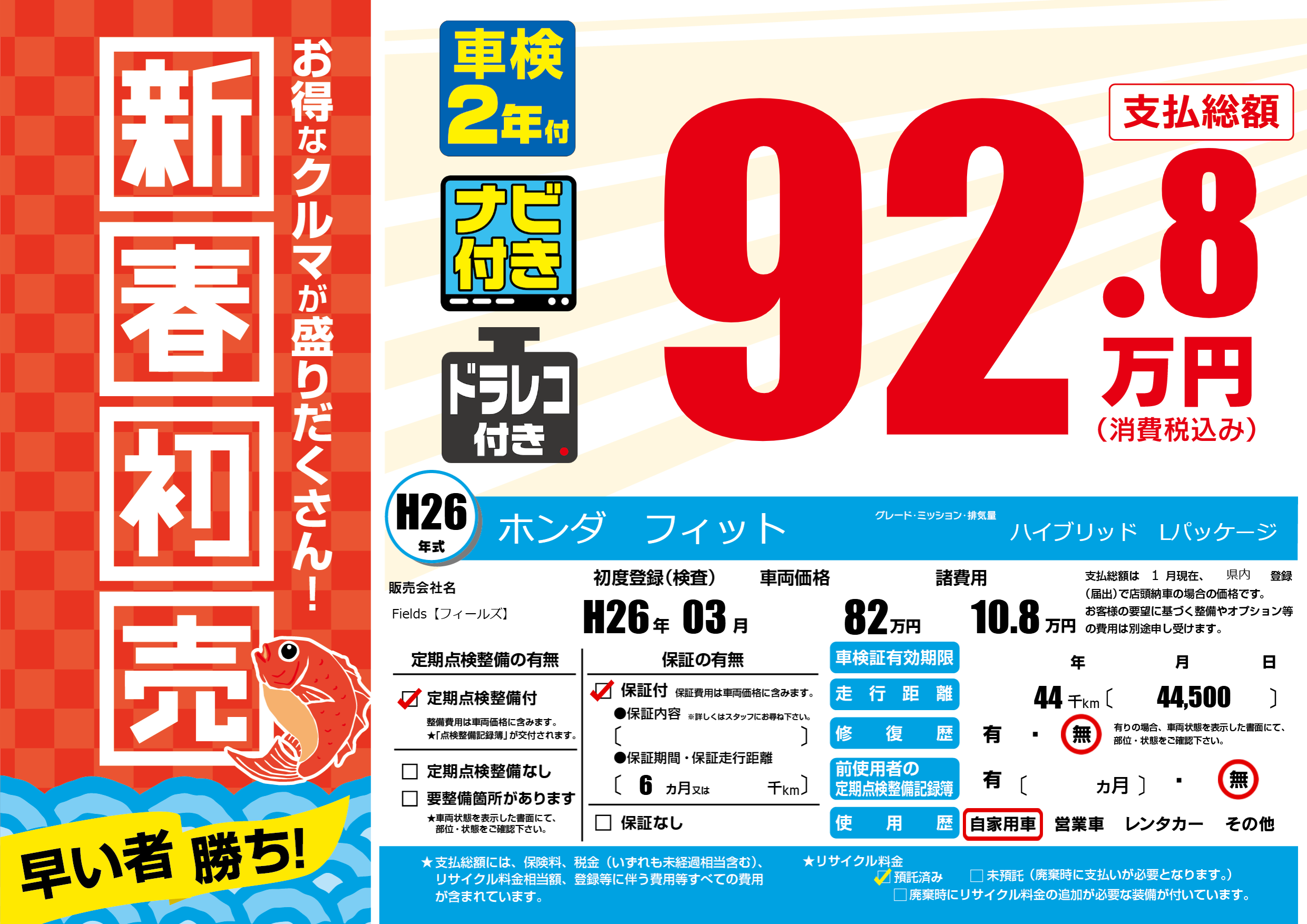 | 走行キロ | 4.4万km | 初年度登録 | H26年03月 |