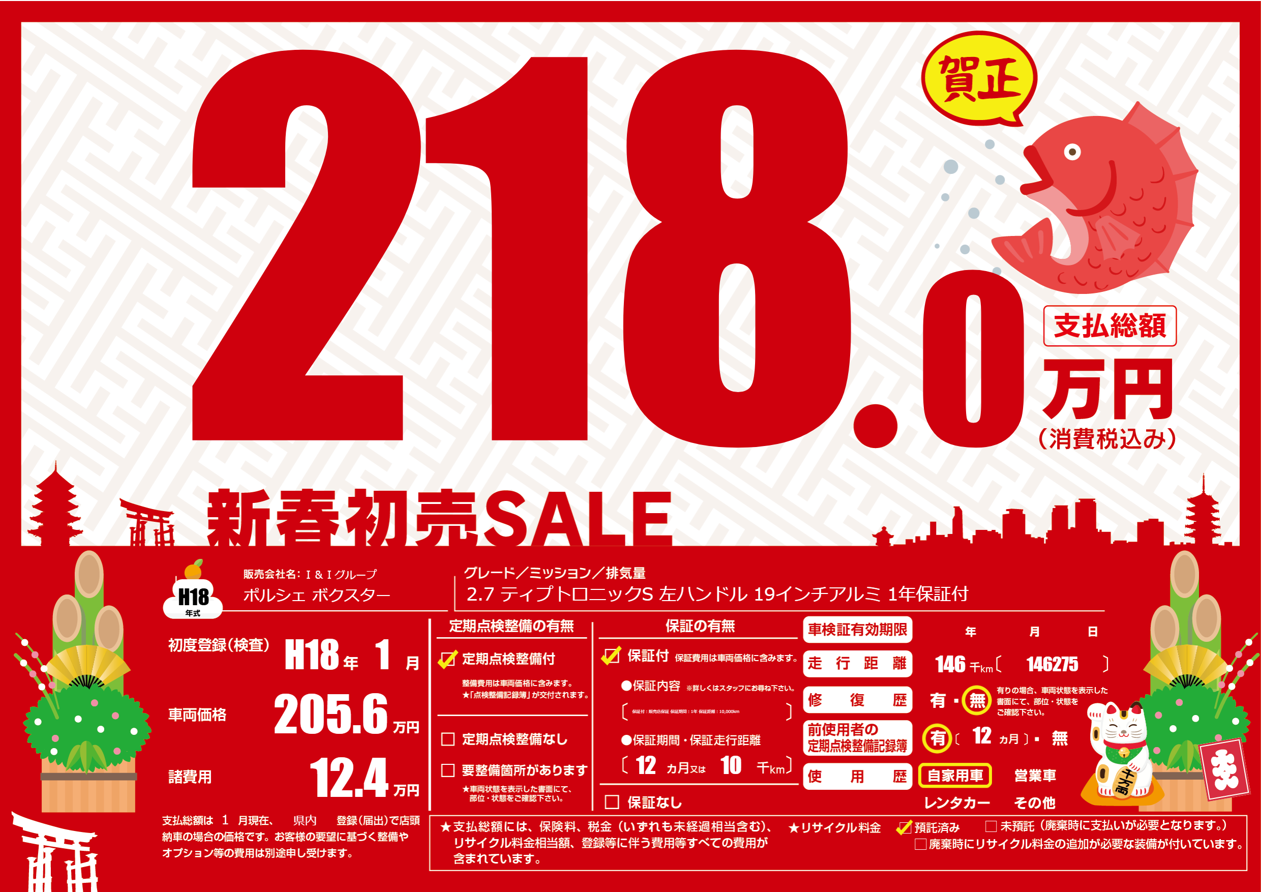 | 走行キロ | 14.6万km | 初年度登録 | H18年1月 |