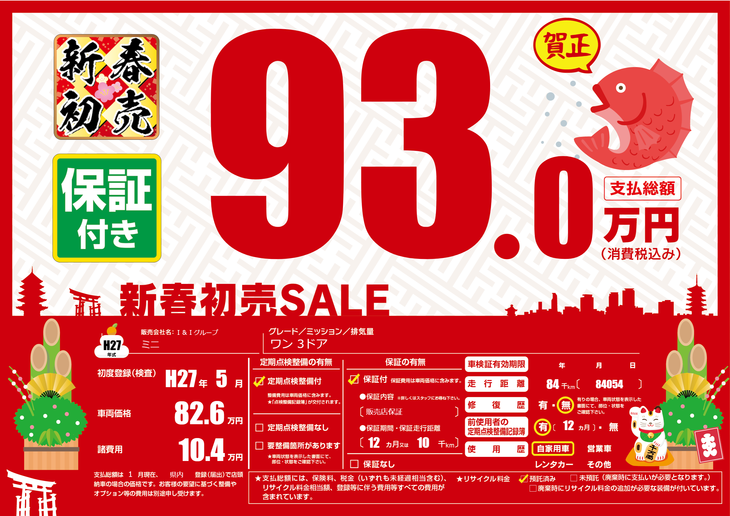 保証なし 保証内容(販売店保証) 12ヶ月または(10)千kmまで |
