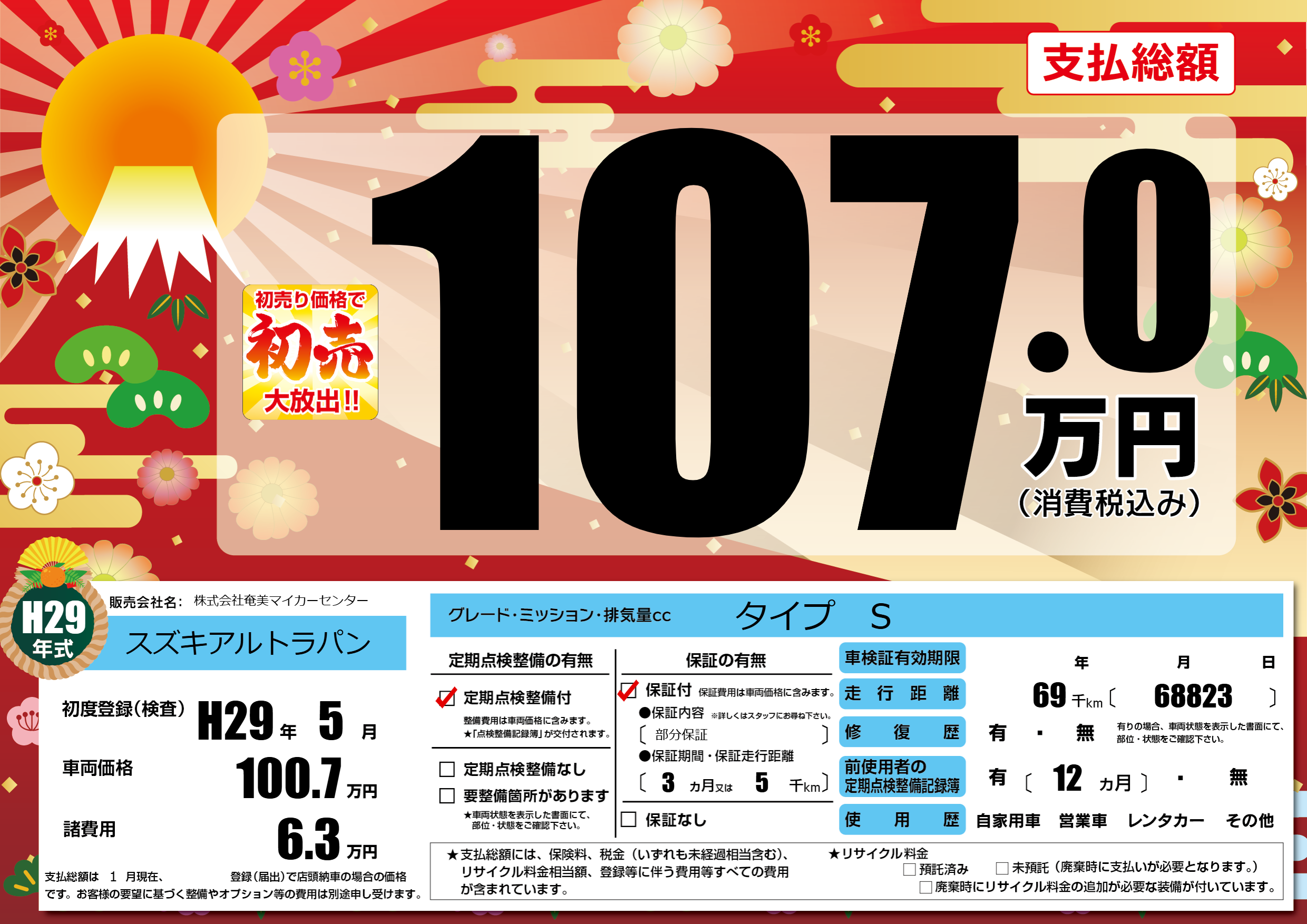 保証付き 保証内容(部分保証) 3ヶ月または(5)千kmまで |