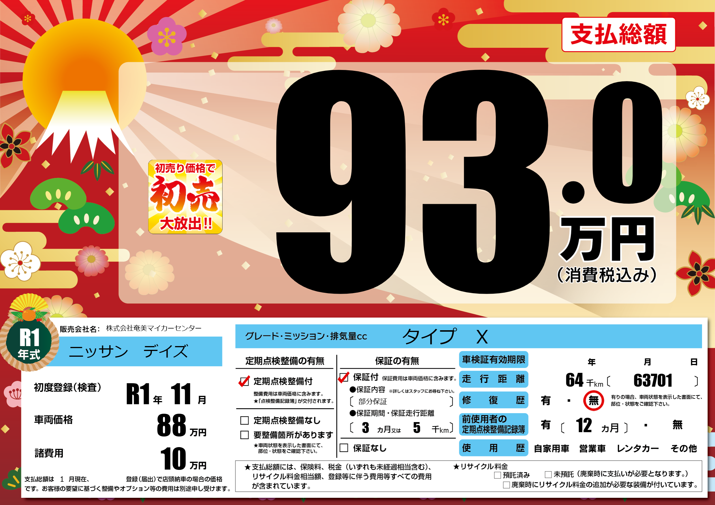 | 車名 | ニッサン デイズ | グレード ミッション 排気量 |