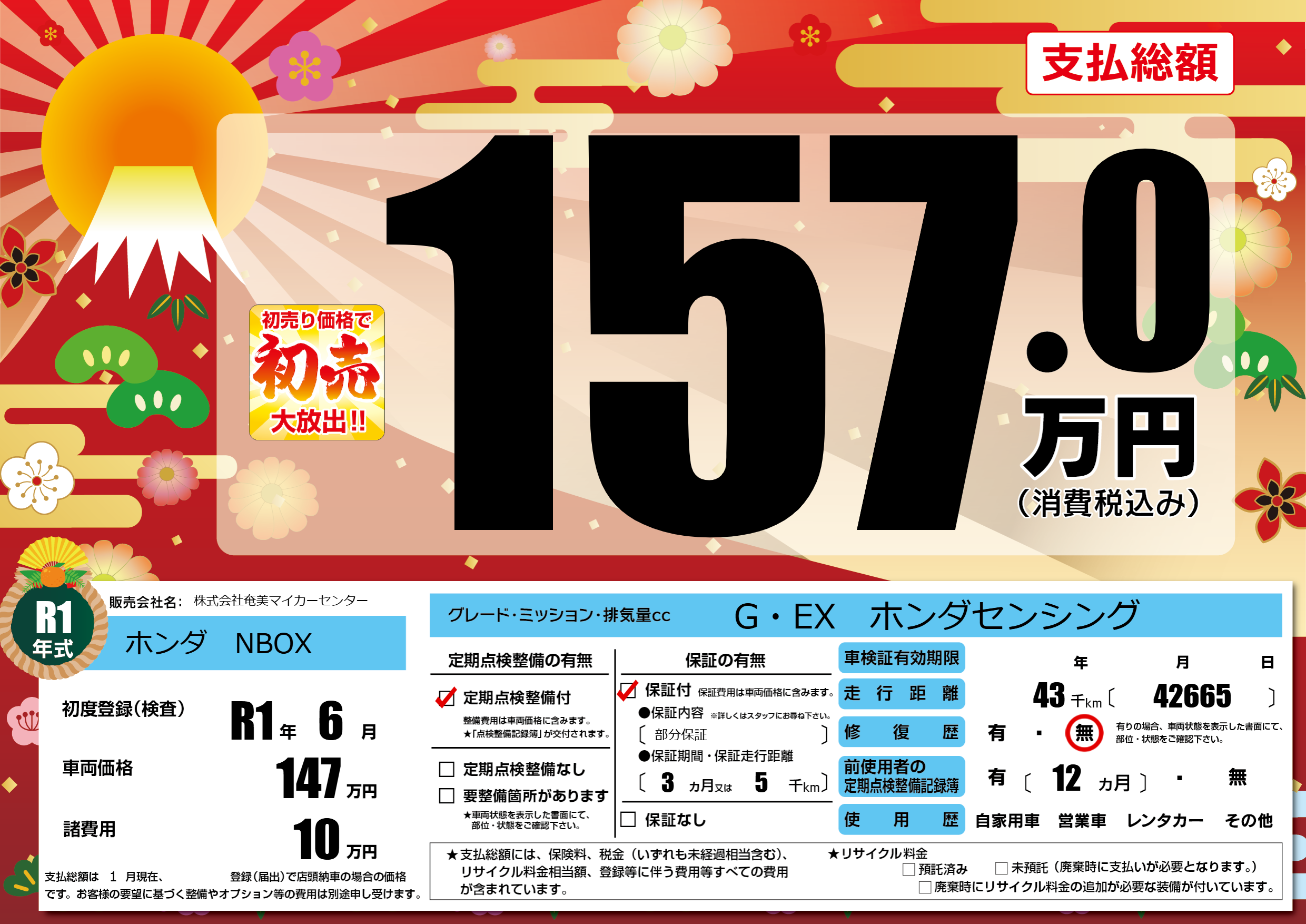 | 走行キロ | 4.3万km | 初年度登録 | R1年6月 |