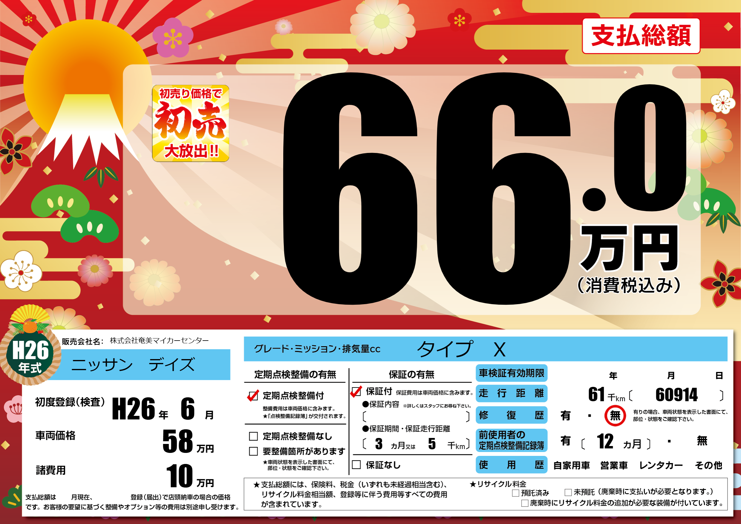 | 車名 | ニッサン デイズ | グレード ミッション 排気量 |