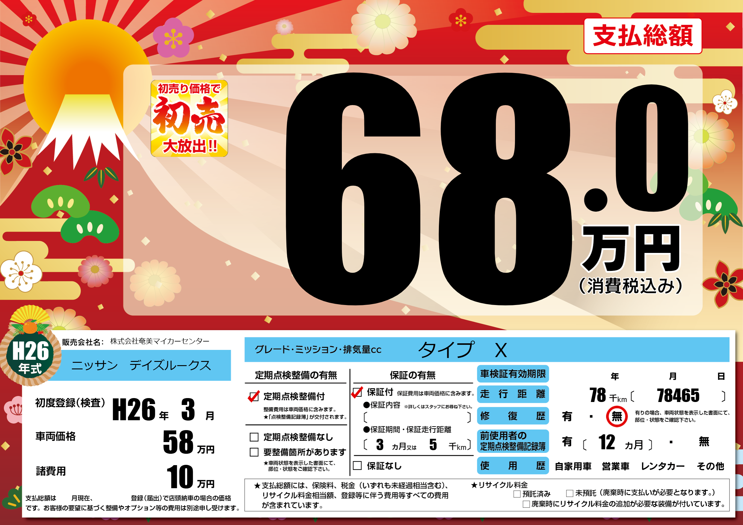 | 車名 | ニッサン デイズルークス | グレード ミッション 排気量 |