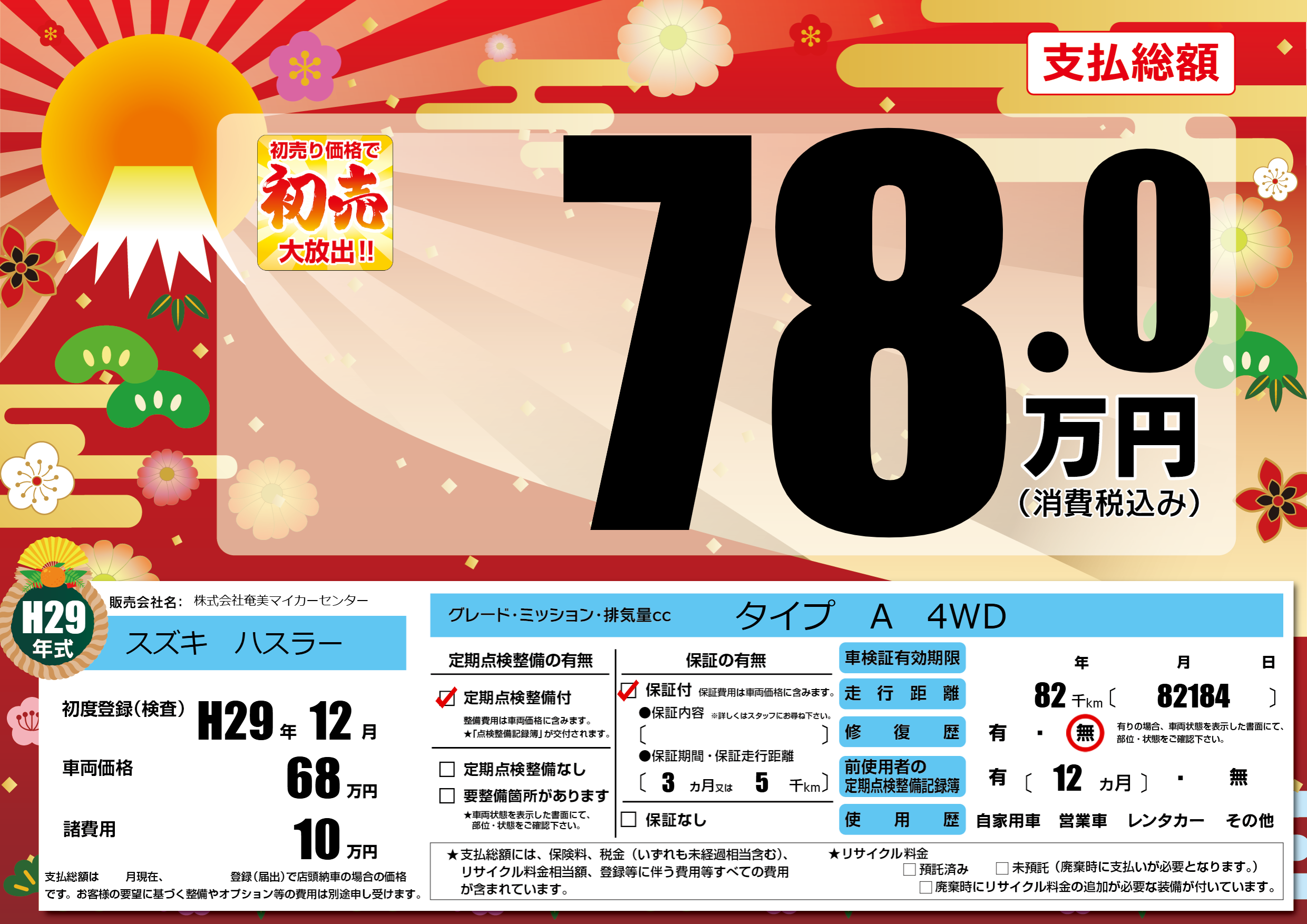 | 走行キロ | 8.2万km | 初年度登録 | H29年12月 |
