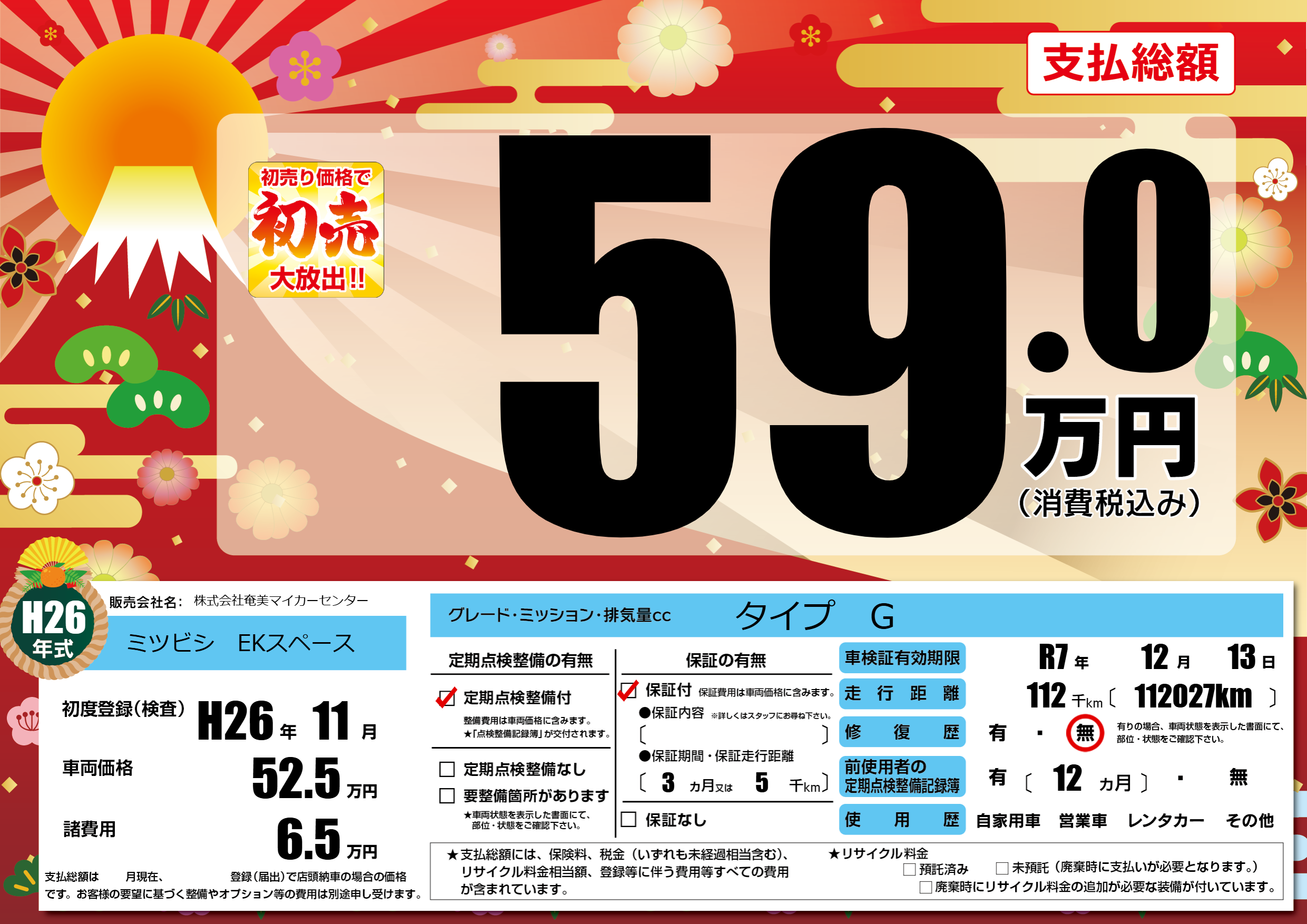 | 車名 | ミツビシ EKスペース | グレード ミッション 排気量 |