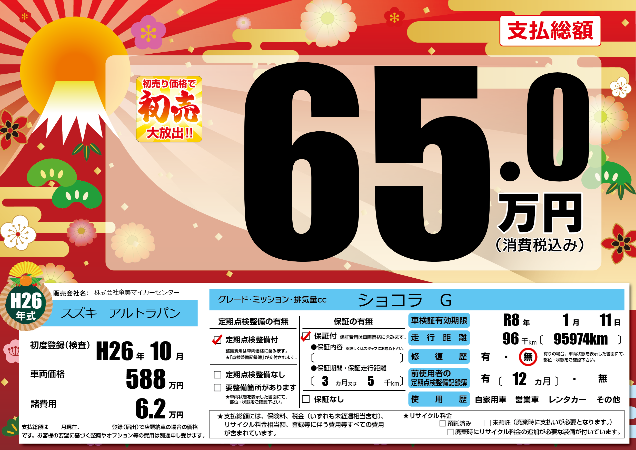 | 走行キロ | 9.6万km | 初年度登録 | H26年10月 |