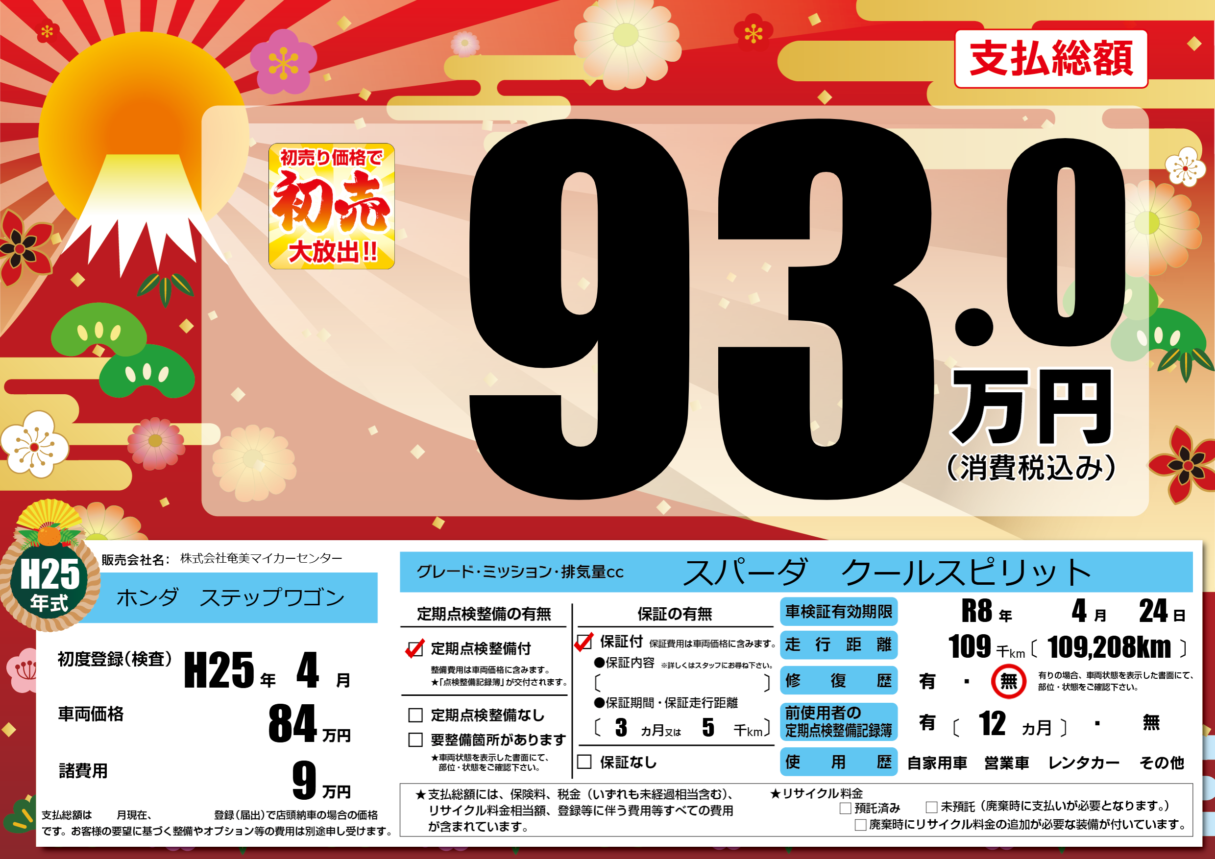 | 走行キロ | 10.9万km | 初年度登録 | H25年4月 |