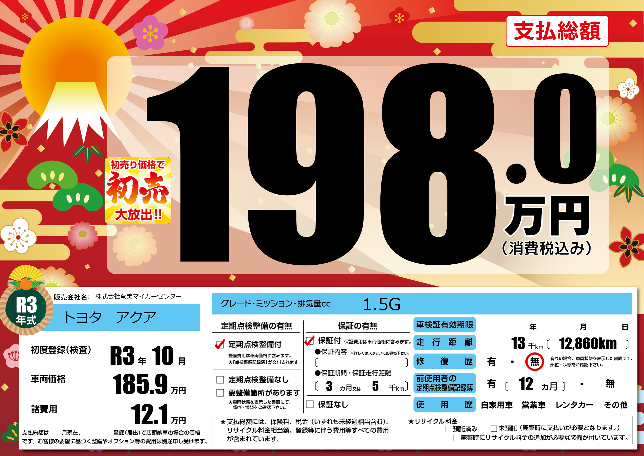 | 走行キロ | 1.3万km | 初年度登録 | R3年10月 |