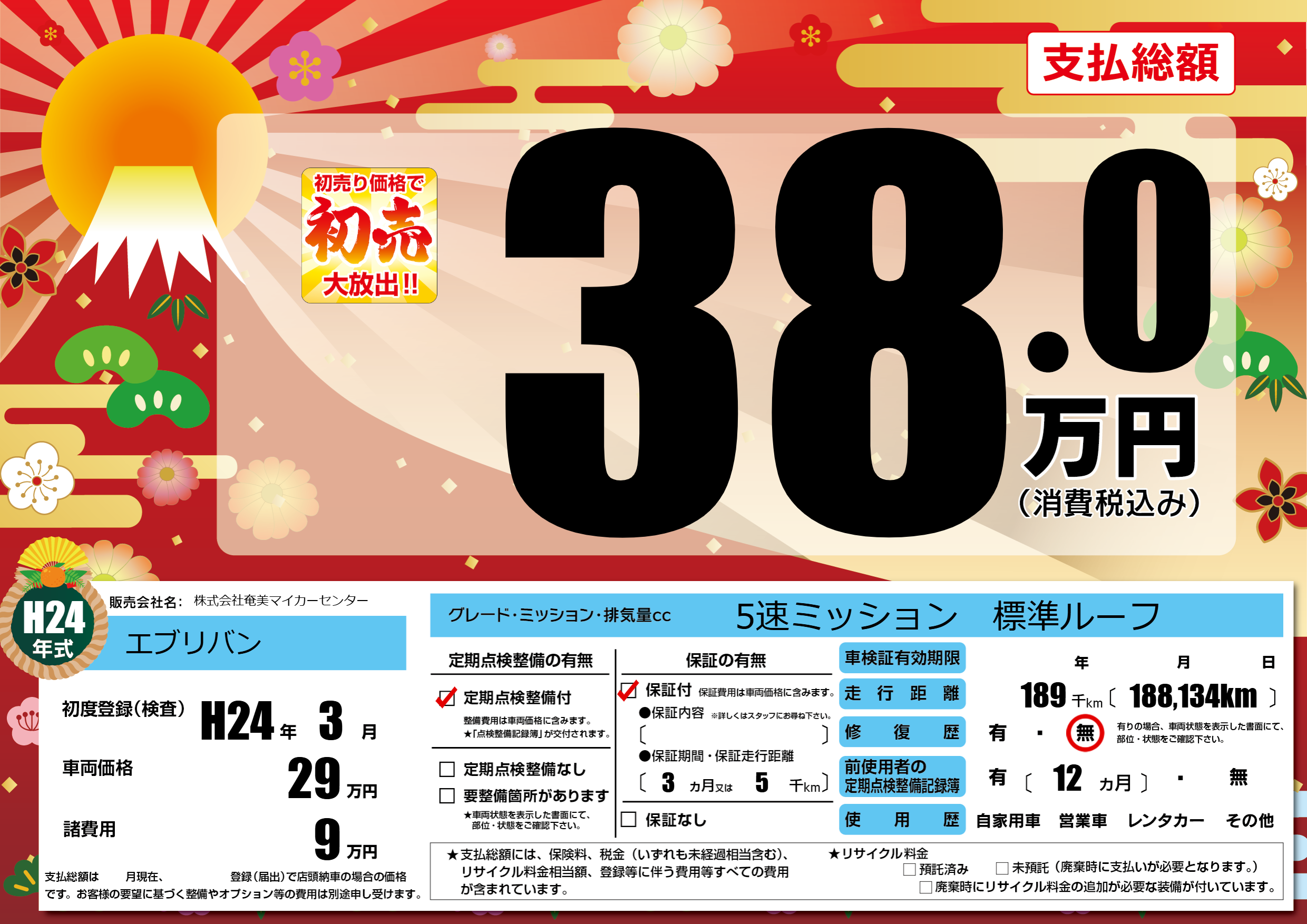 | 車名 | エブリバン | グレード ミッション 排気量 |