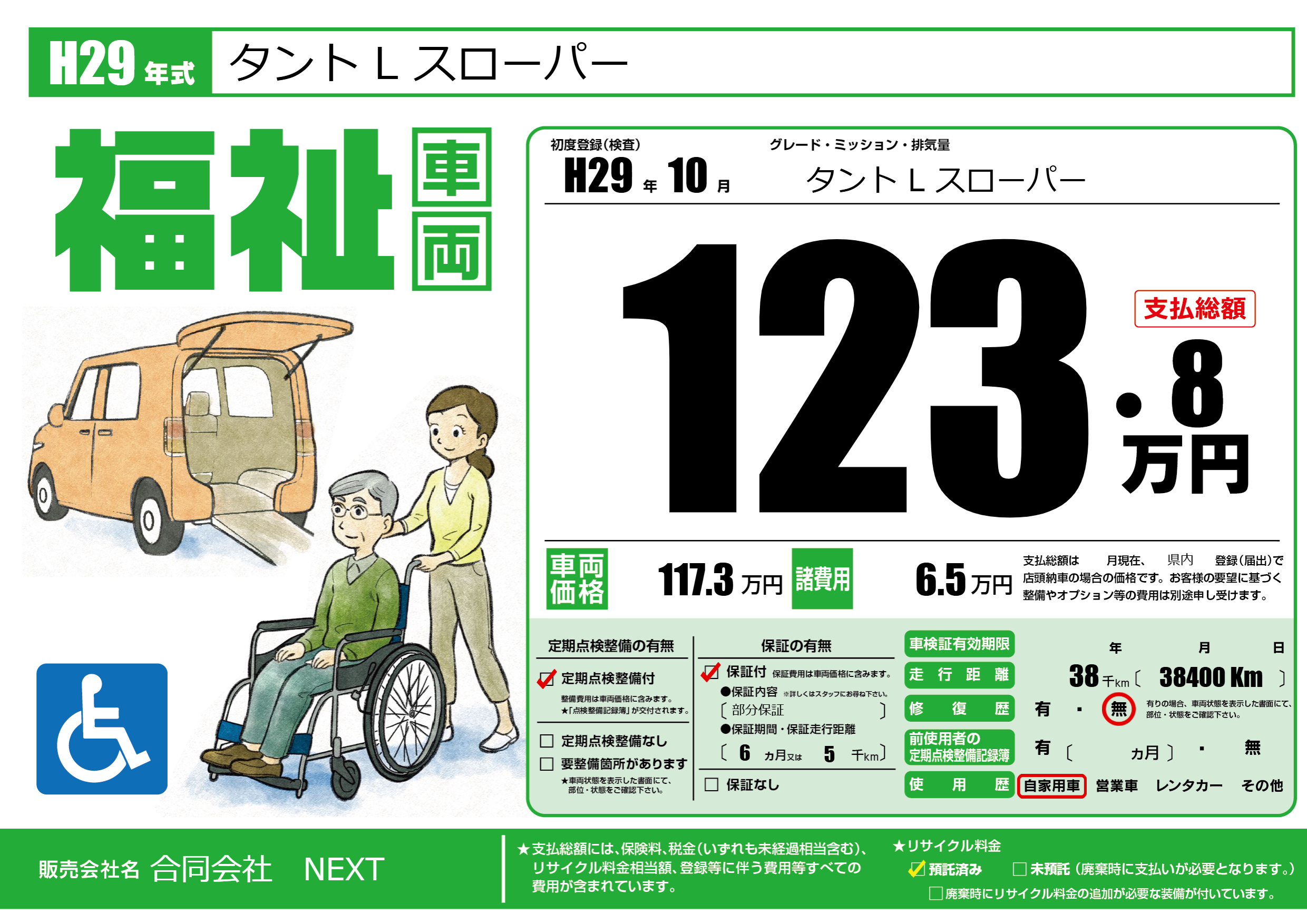 | 車名 | タント L スローパー | グレード ミッション 排気量 |