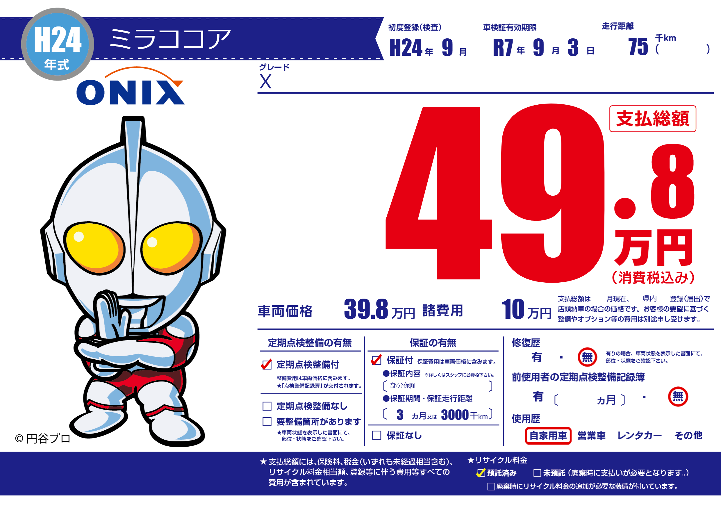 | 車名 | ミラココア | グレード ミッション 排気量 |