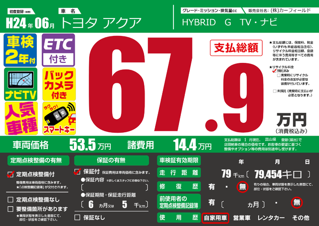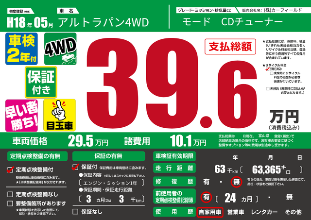 保証付き 保証内容(---) 12ヶ月または(10)千kmまで |