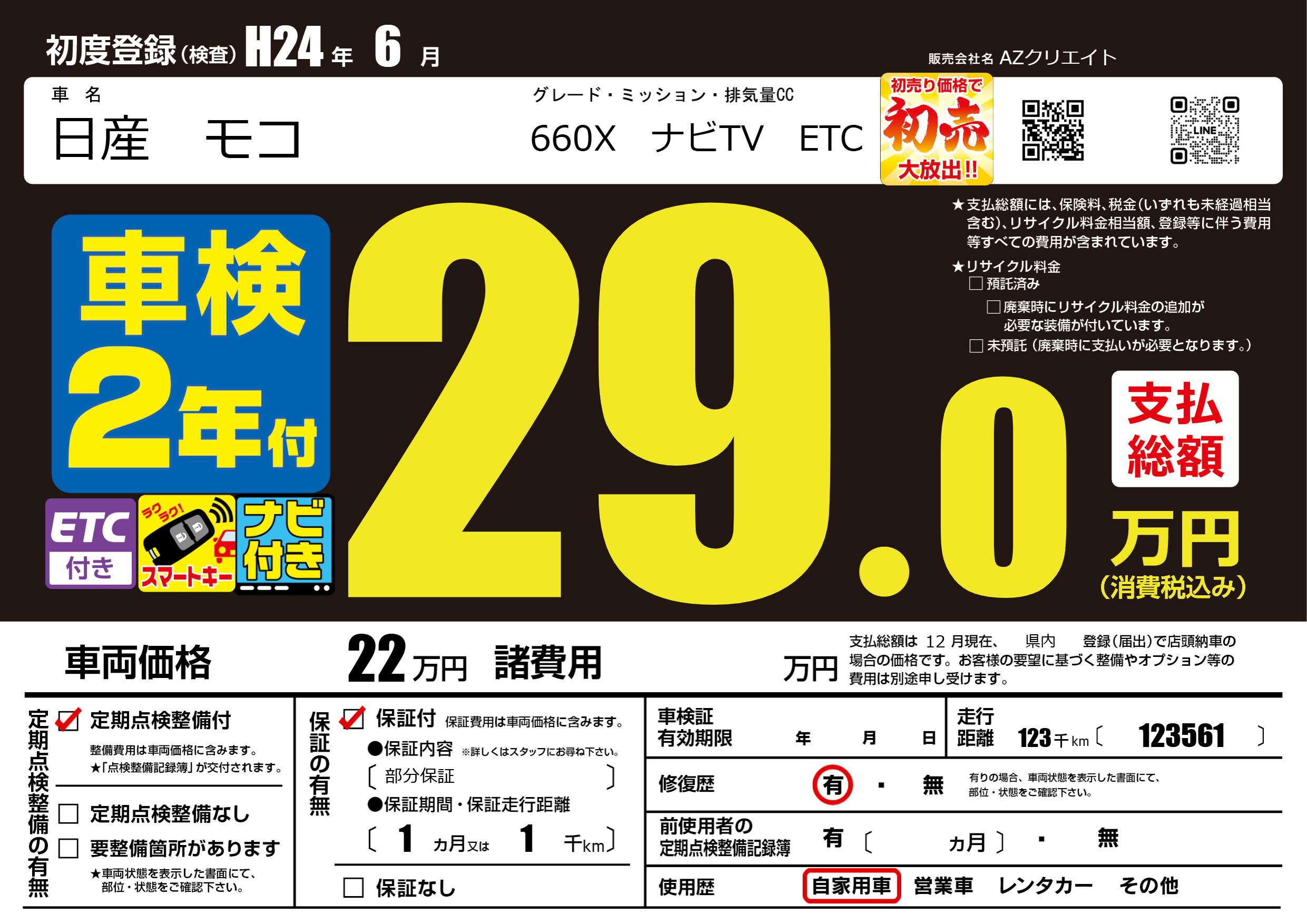 | 走行キロ | 12.3万km | 初年度登録 | H24年6月 |
