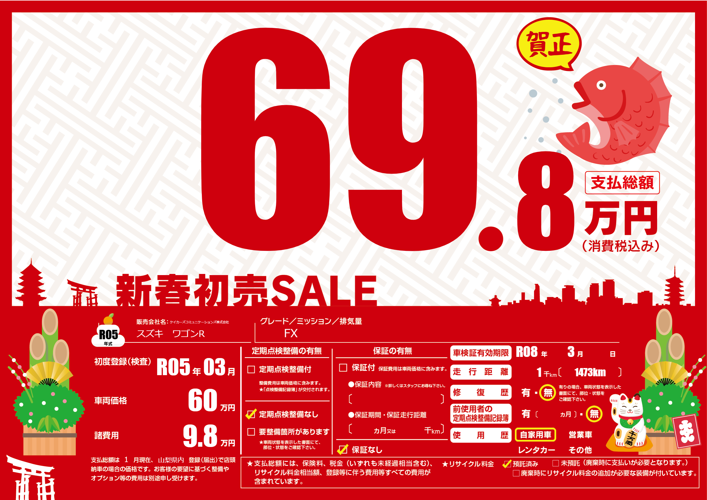 なし | 車検制限 | R08年3月---月 |